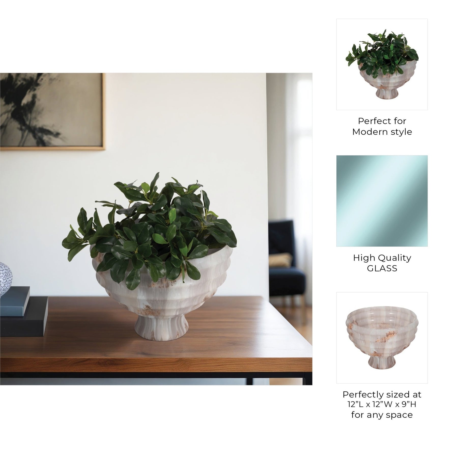 وعاء زجاجي قائم بارتفاع 12 بوصة بتشطيب أوبال، متعدد اللون