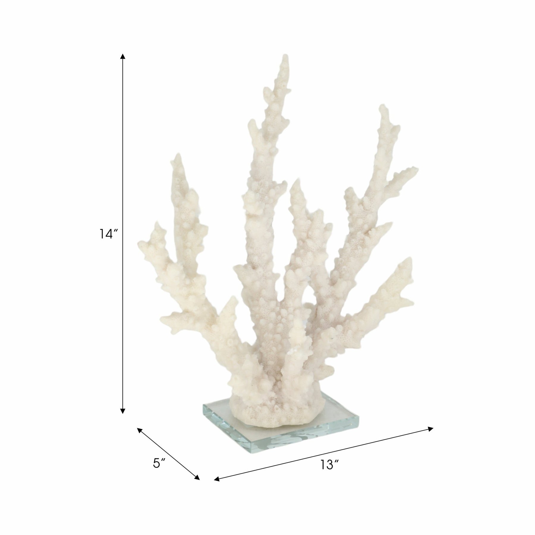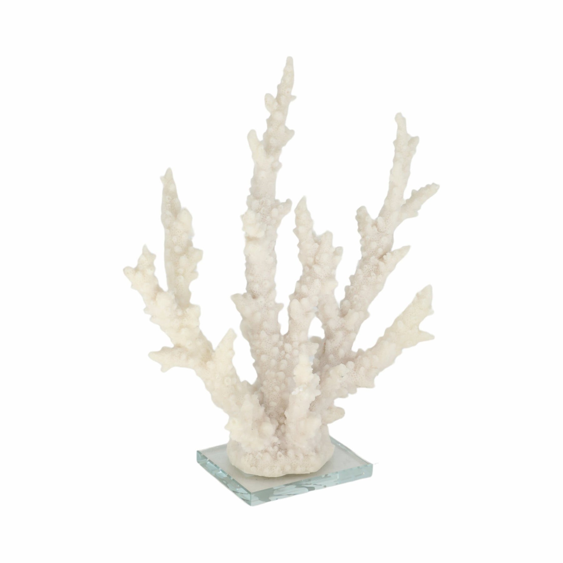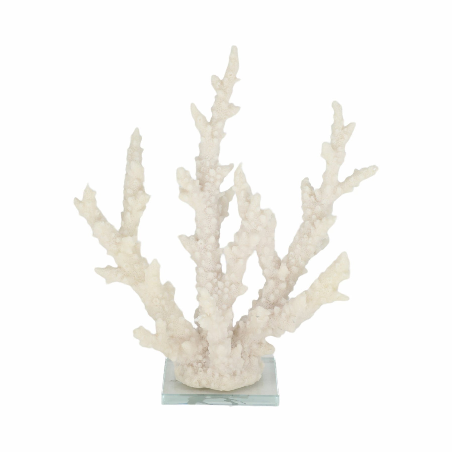 14" Branching Coral On Glass Base, White - Al Rugaib Furniture