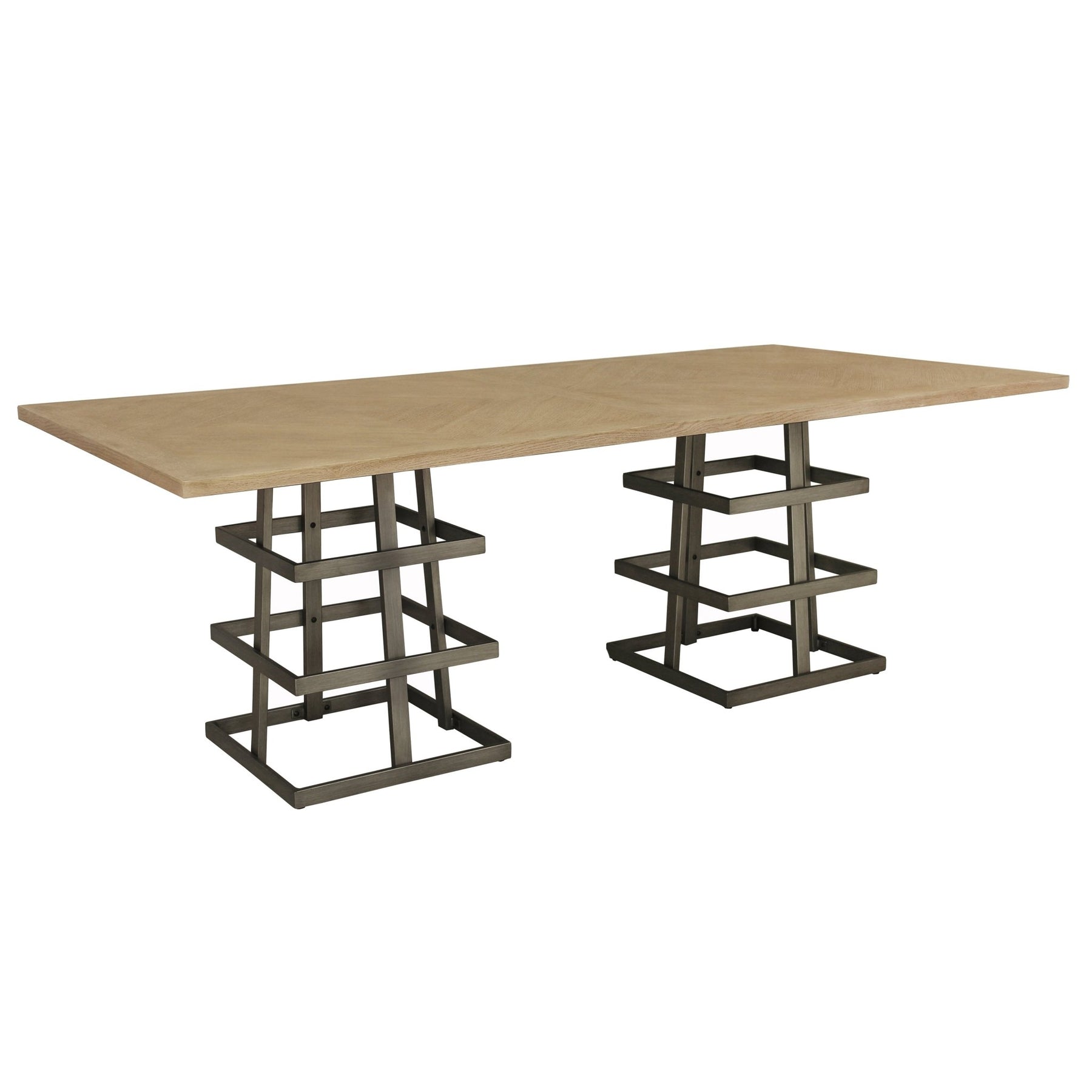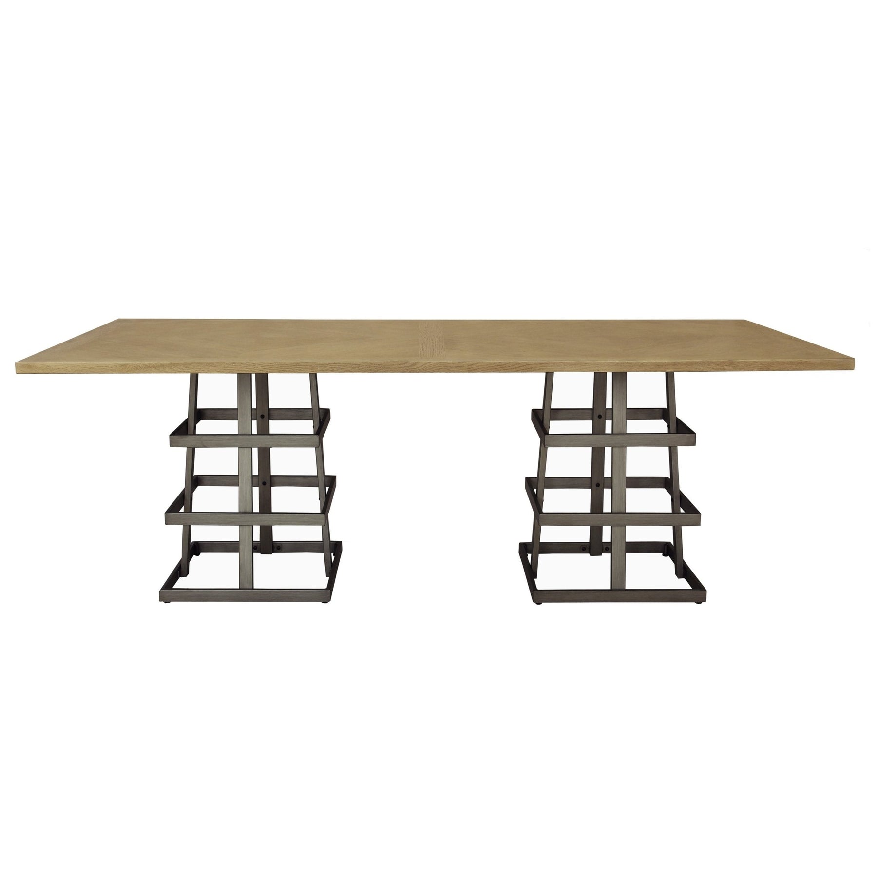 تصميم جذاب لطاولة الطعام يمزج بين عناصر الذوق الصناعي مع لوحة ألوان خفيفة الوزن وغير رسمية، تصميم بقاعدة مزدوجة يوفر مساحة واسعة للأصدقاء والعائلة والضيوف للتجمع، الجزء العلوي ذو اللمسة النهائية الأشقر الفاتح مزين بحبيبات الخشب الطبيعي والأنماط الدقيقة، تصميم قاعدة معدنية بأشرطة يوفر دعمًا قويًا دون إثقال الملف الشخصي، مصنوع من الأخشاب الصلبة المختارة والخشب المصنع والقشرة والمعادن من أجل طول العمر، التجميع مطلوب؛ يوصى بشخصين لإكمال إعداد الطاولة
