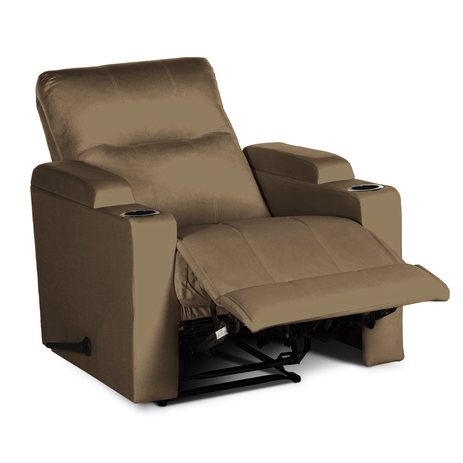 Cinematic Velvet Upholstered Rocking & Rotating Recliner Chair With Bed Mode From In House - Light Brown - AB08 - Al Rugaib Furniture