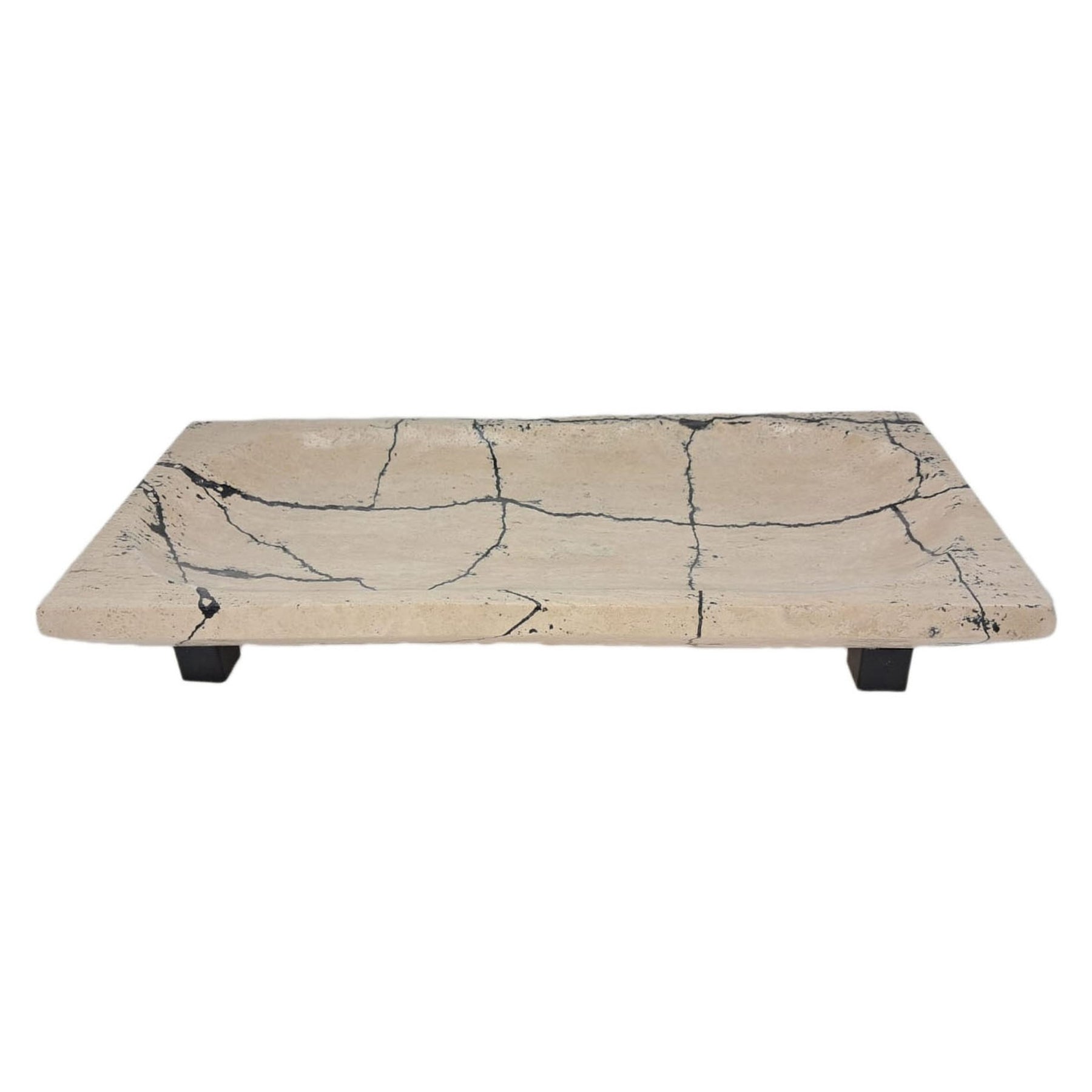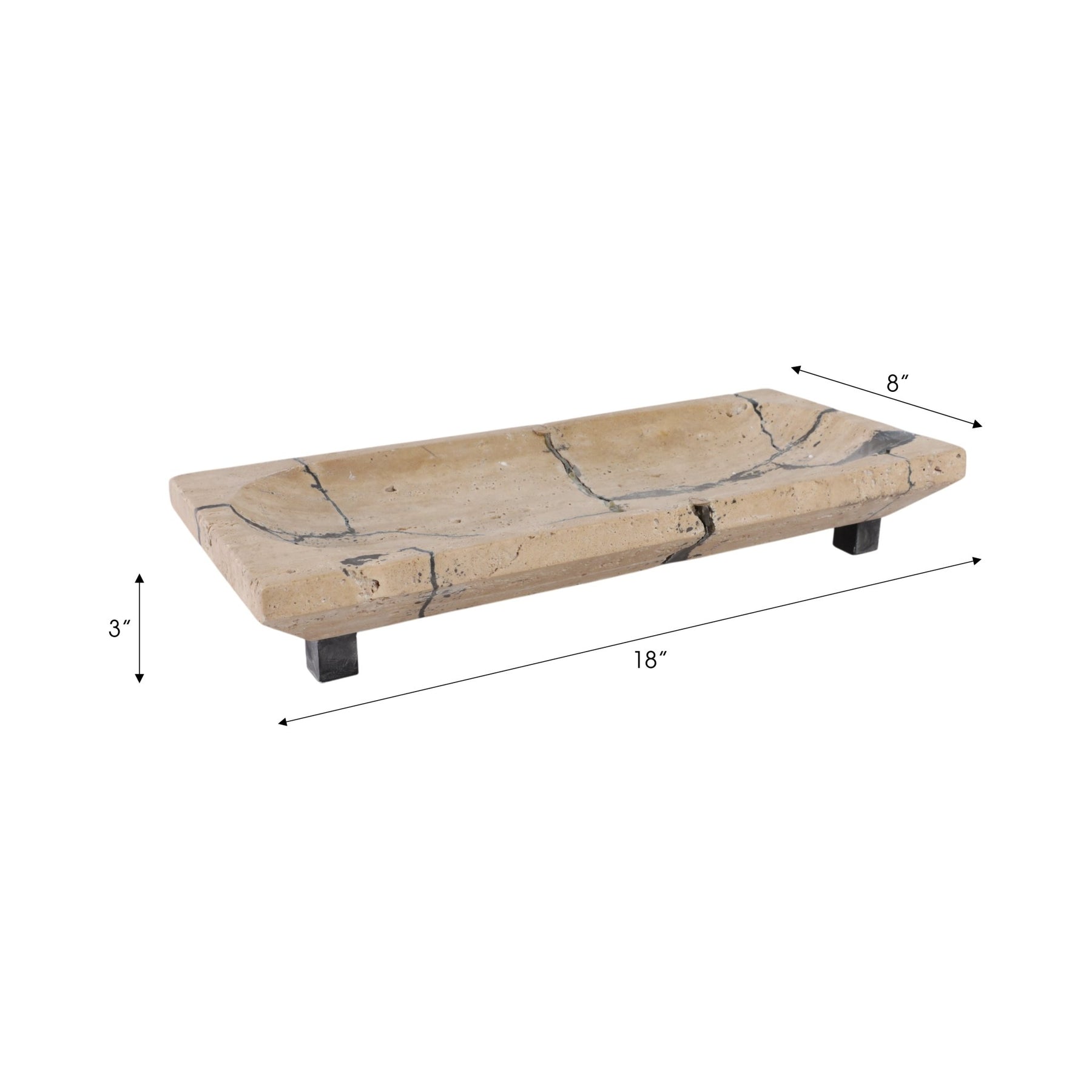 18" Gorda Crackle Travertine Tray - Al Rugaib Furniture