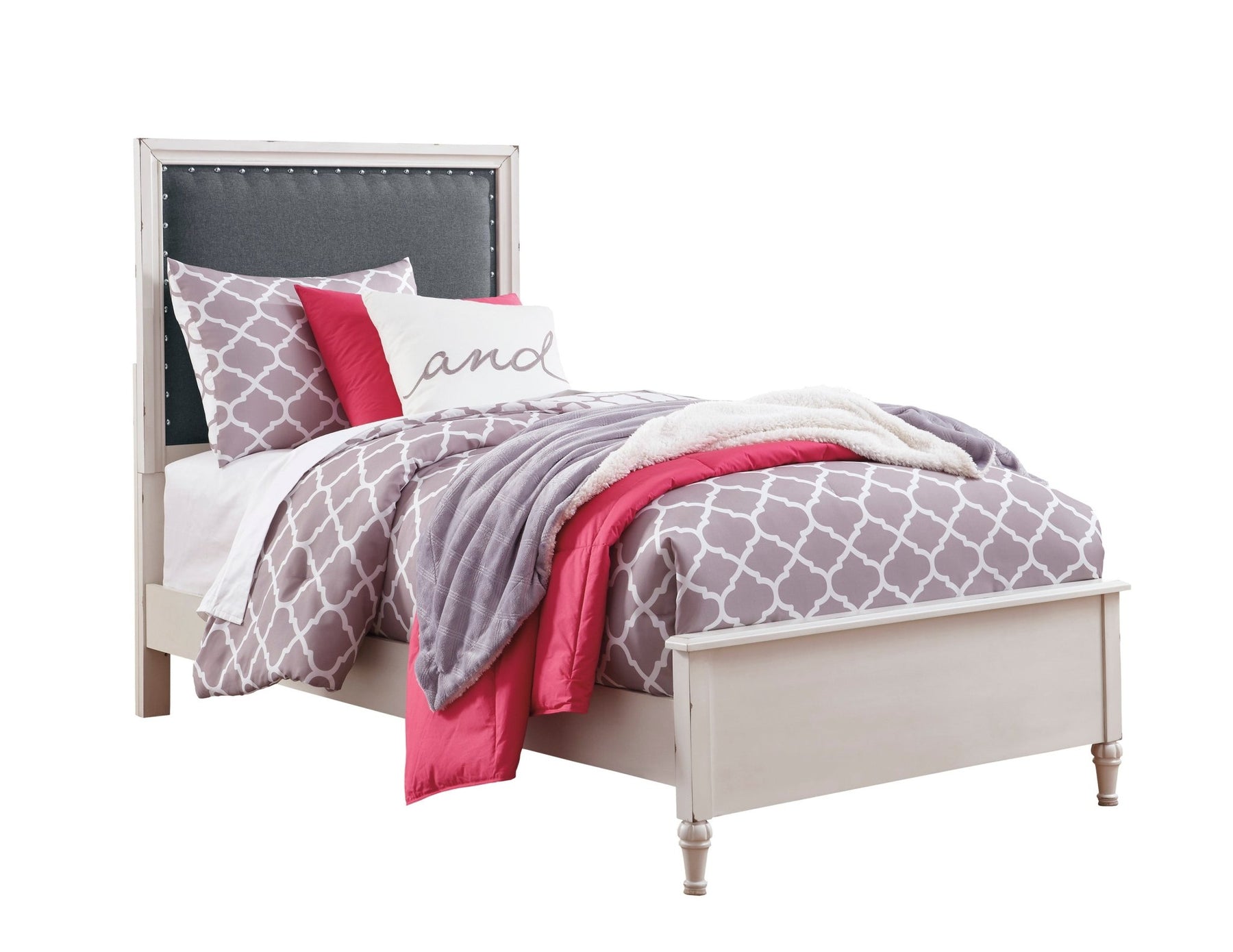 سرير Johnelle King Panel ذو لوحة كبيرة، مريح، دافئ، ذو لون سماوي، مغرٍ بلمسة نهائية رمادية باهتة، وقوالب كبيرة. من المؤكد أن سرير Johnelle King Panel سيجعل منزلك يشعر وكأنه منزل. تم تجميل المظهر بقشرة الدردار للحصول على تحفة فنية غنية الصنع في جناح رئيسي مصنوع لسنوات من الرضا. سواء كان جمالك كلاسيكيًا أو انتقائيًا أو مزرعة حديثة، فكن مطمئنًا، هذا السرير عالي الجودة ذو اللوحة الكبيرة هو اختيار ملهم. تتوفر المرتبة والقاعدة/زنبرك الصندوق، تباع بشكل منفصل.