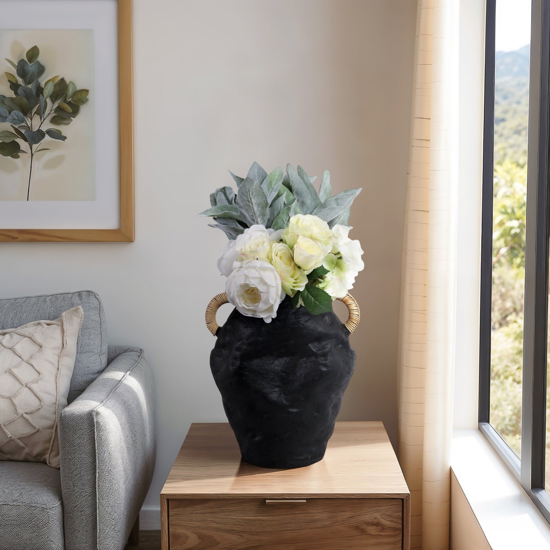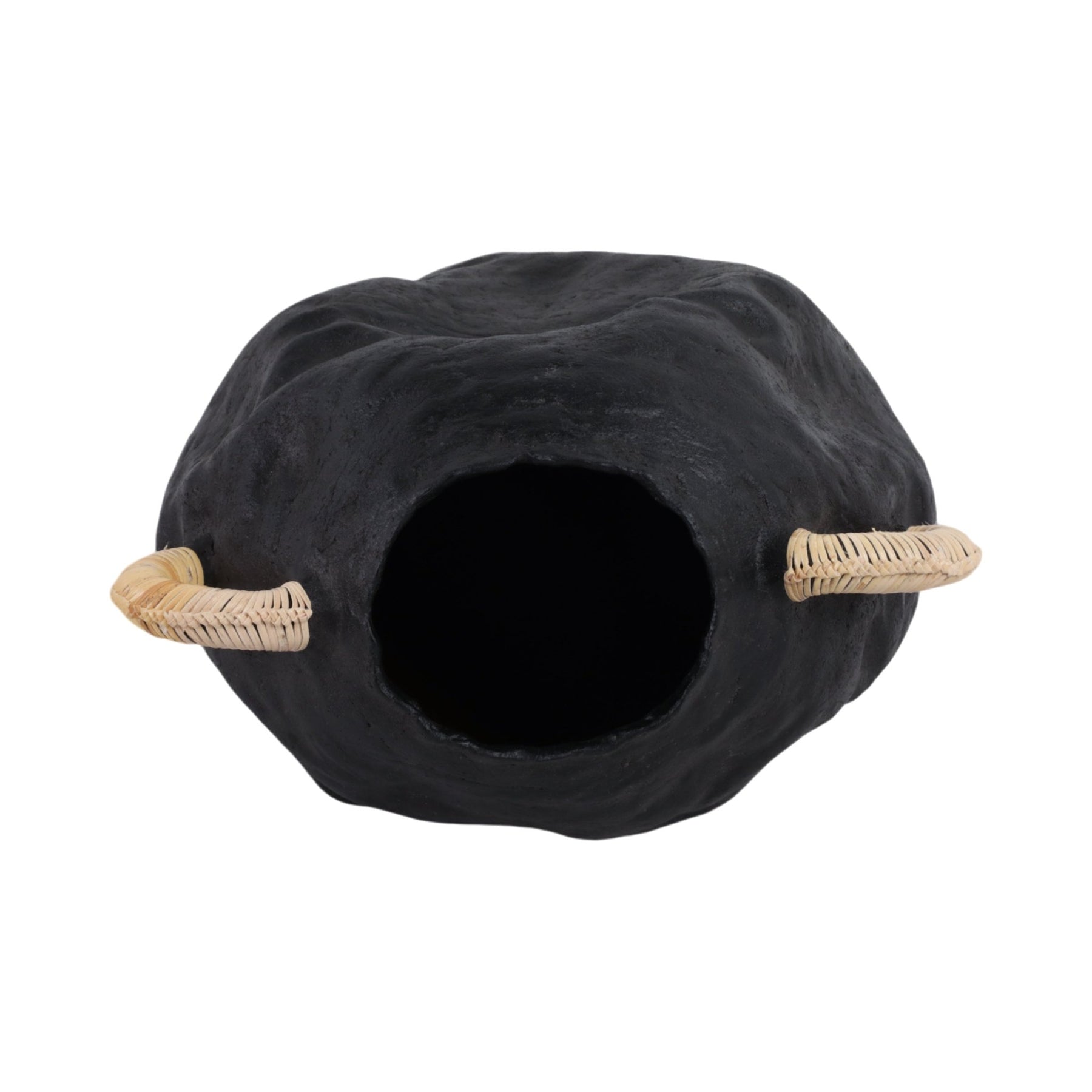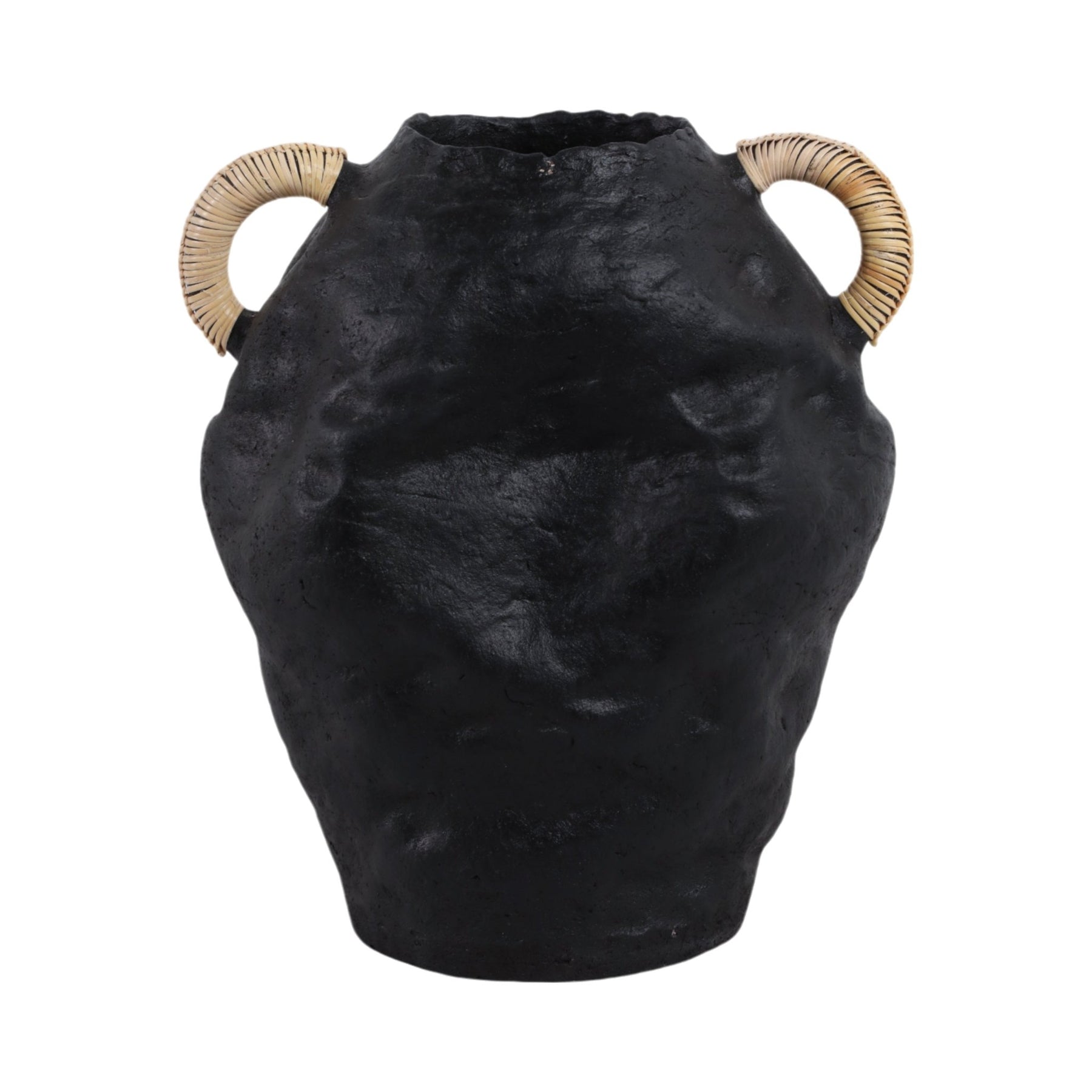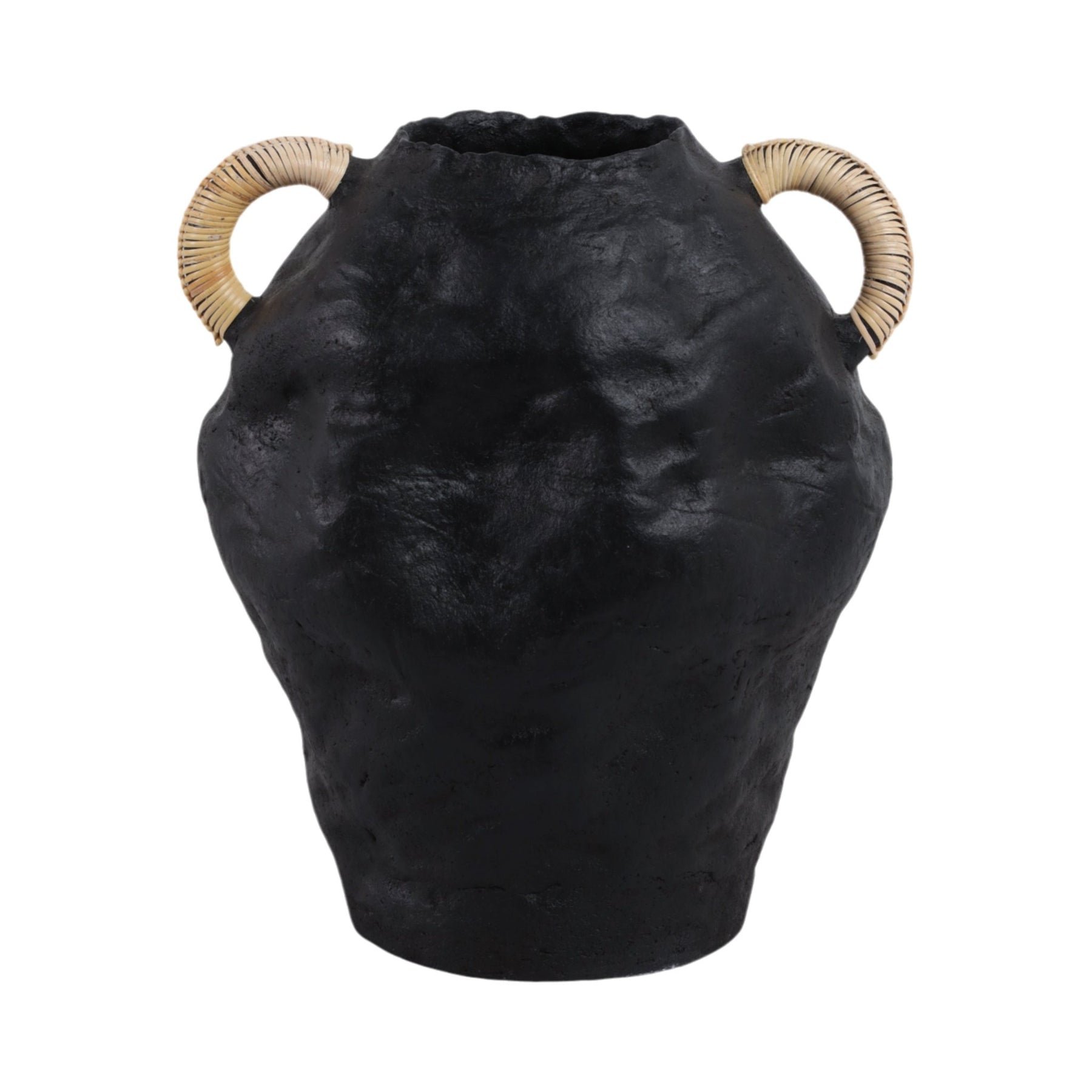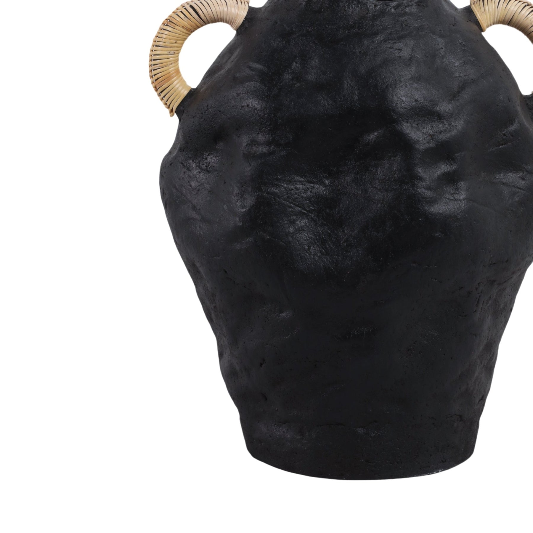 13" Terracotta Jug Vase W/rattan Handles, Blk - Al Rugaib Furniture