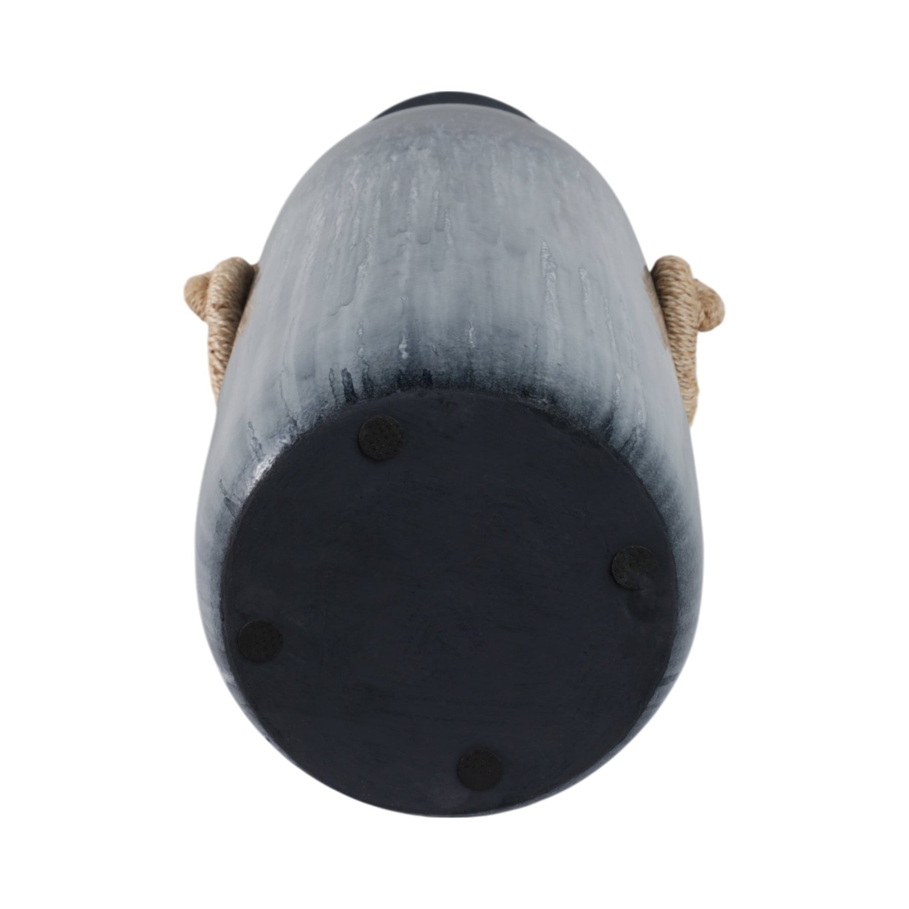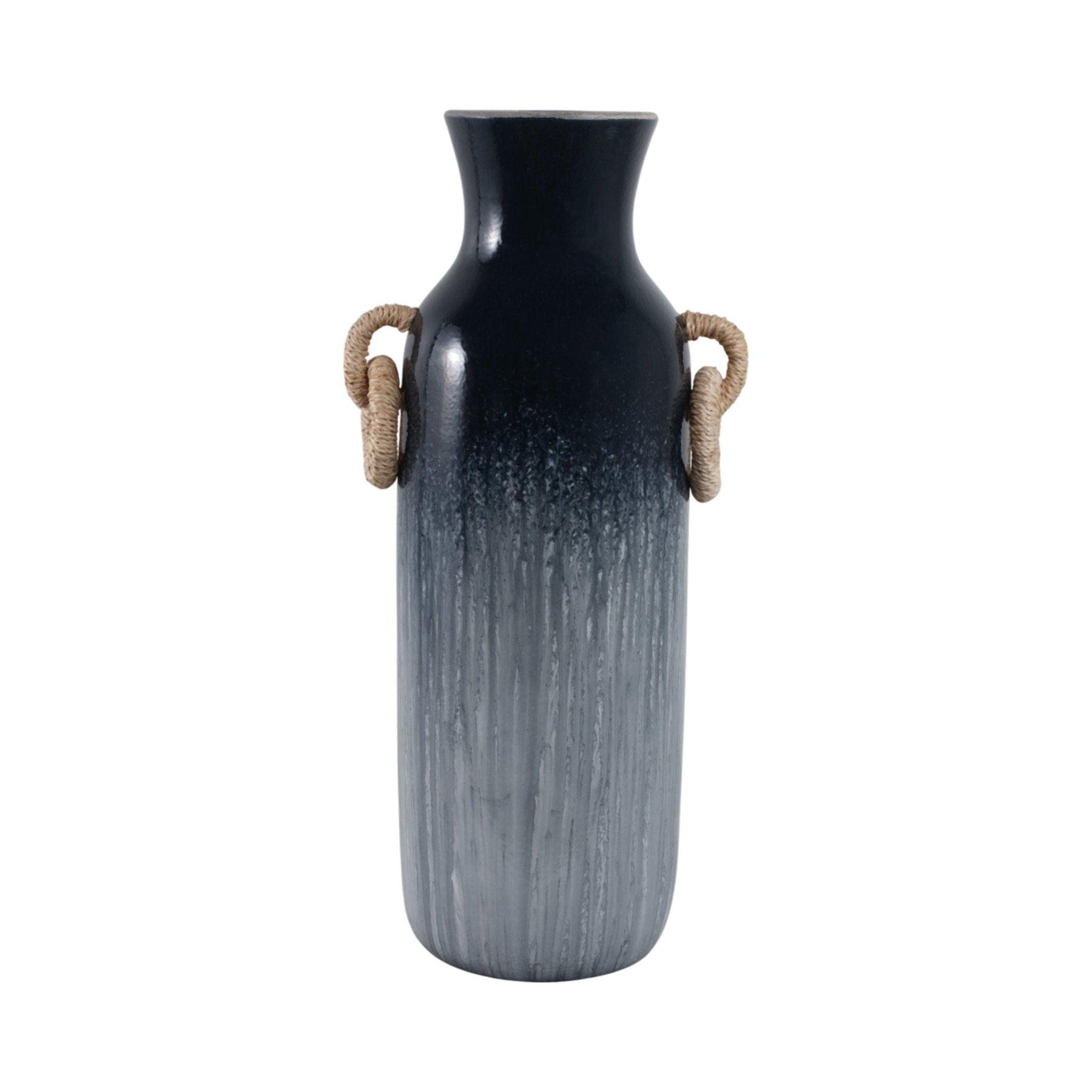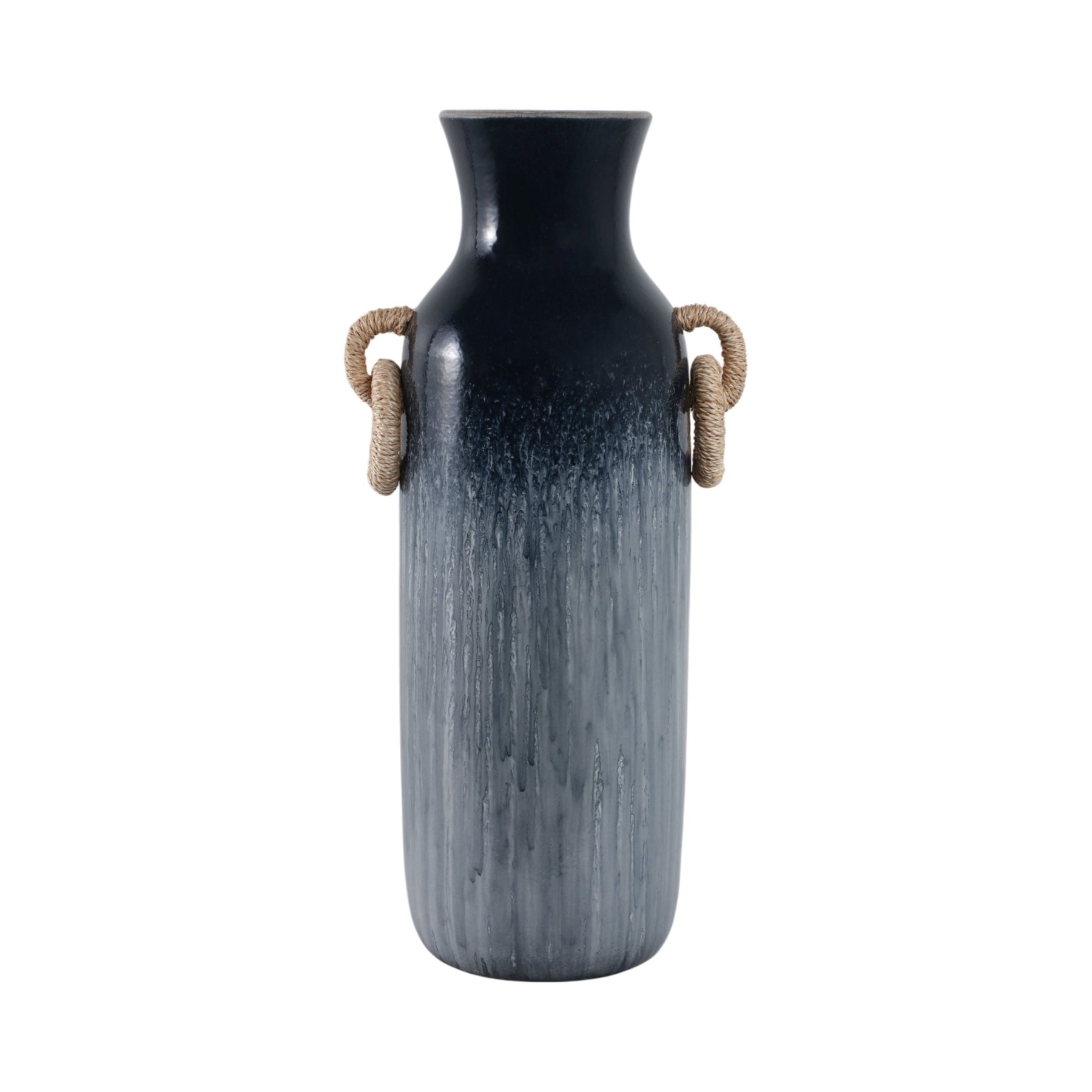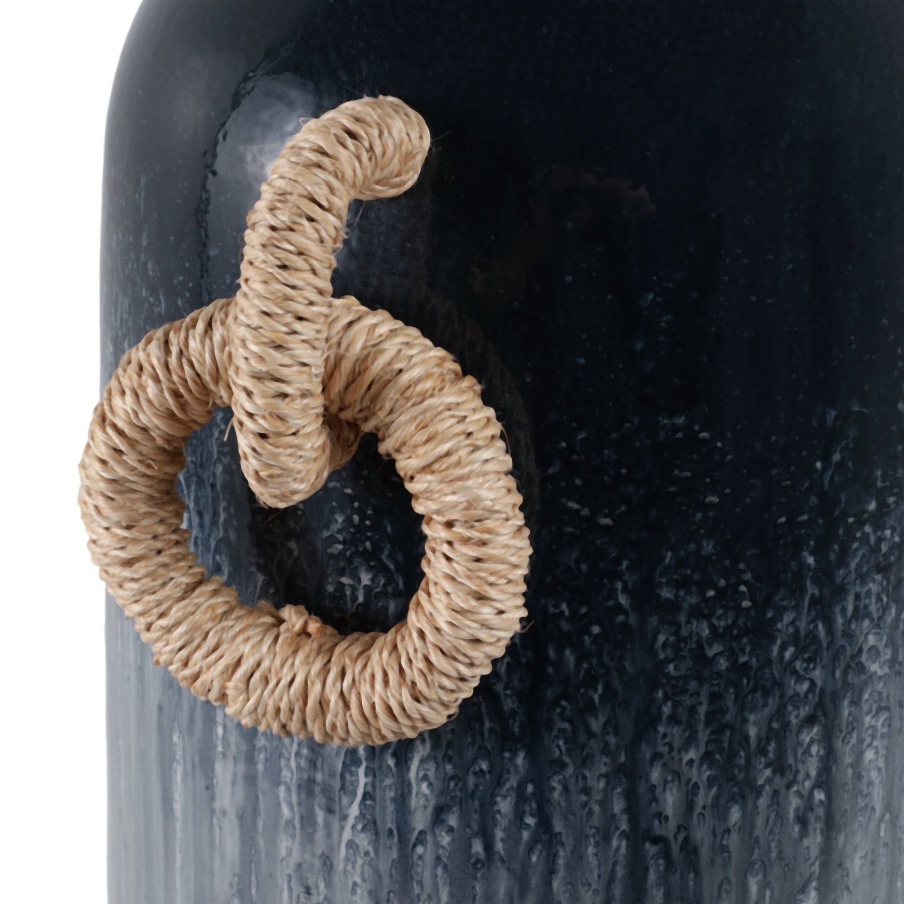 24" Vase With Rattan Handles Reactive Finish, Blue - Al Rugaib Furniture