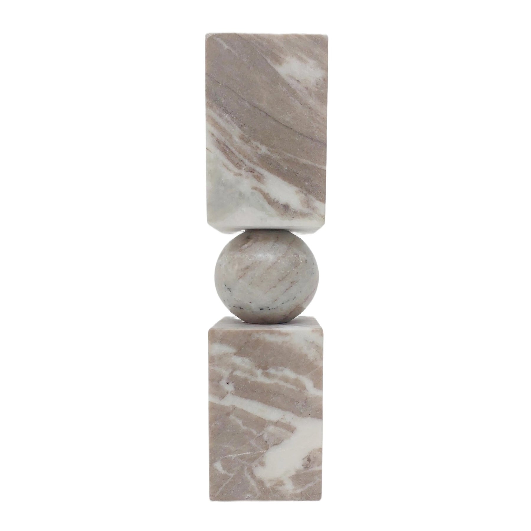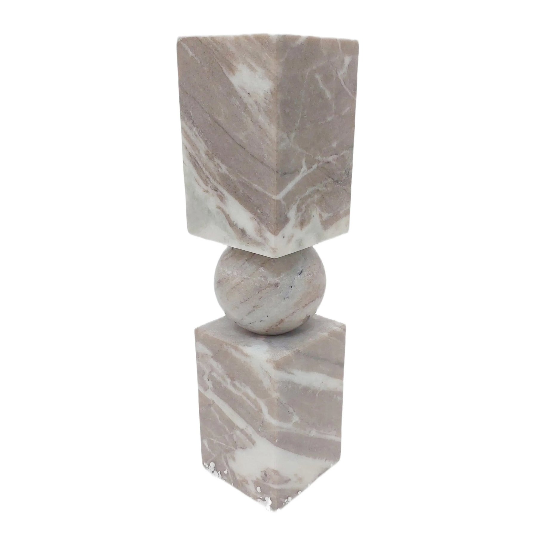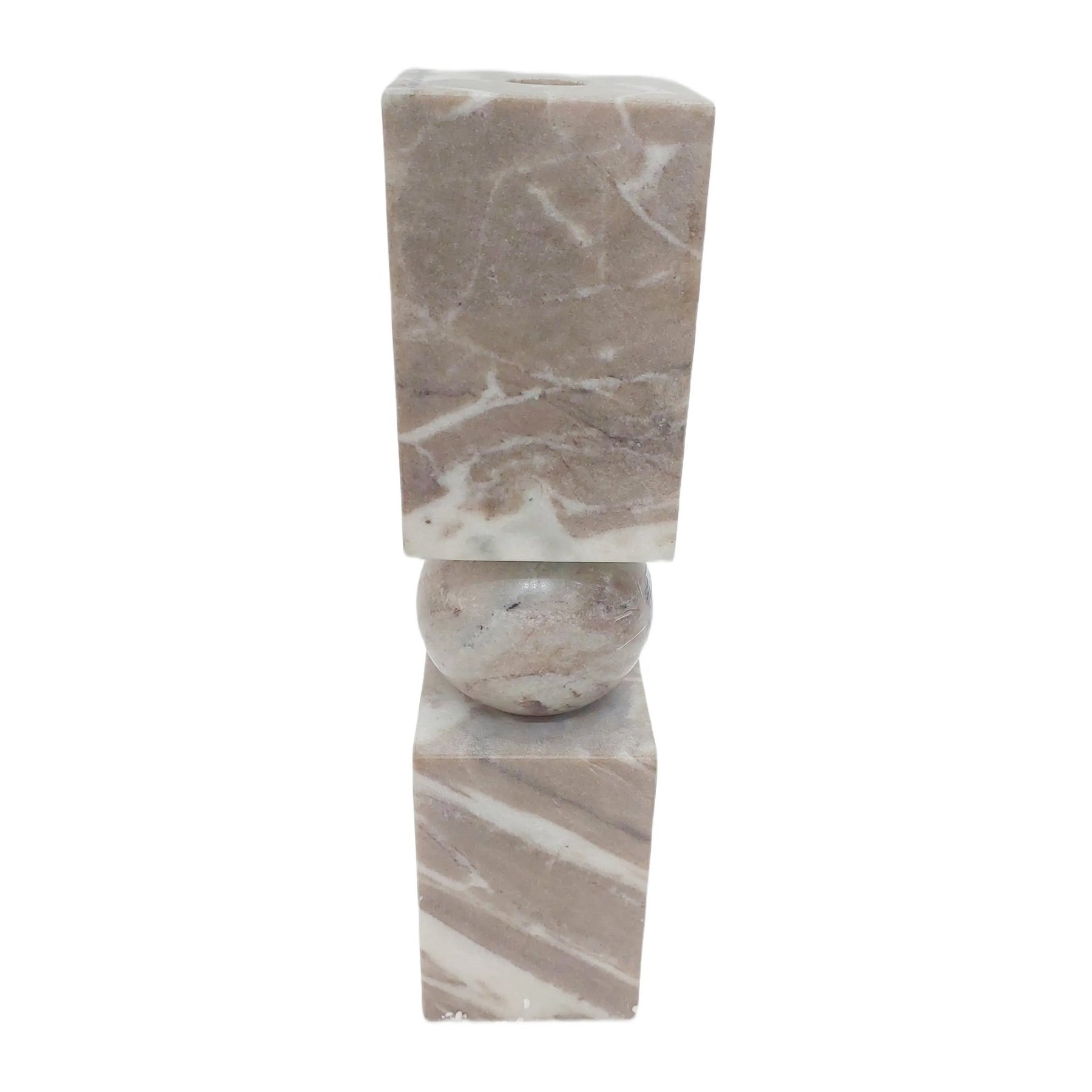 12x3" Chunky Marble Taper Holder, Tan Multi - Al Rugaib Furniture