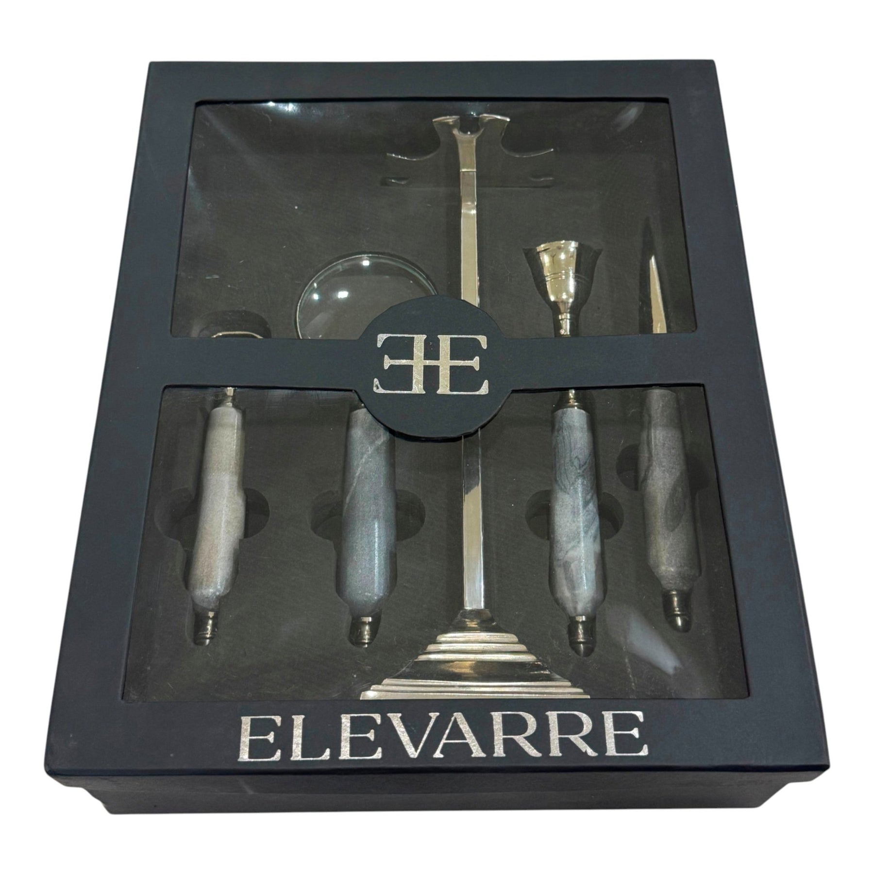 طقم أدوات مكتبية من الرخام الرمادي - 13 بوصة مع علبة هدايا