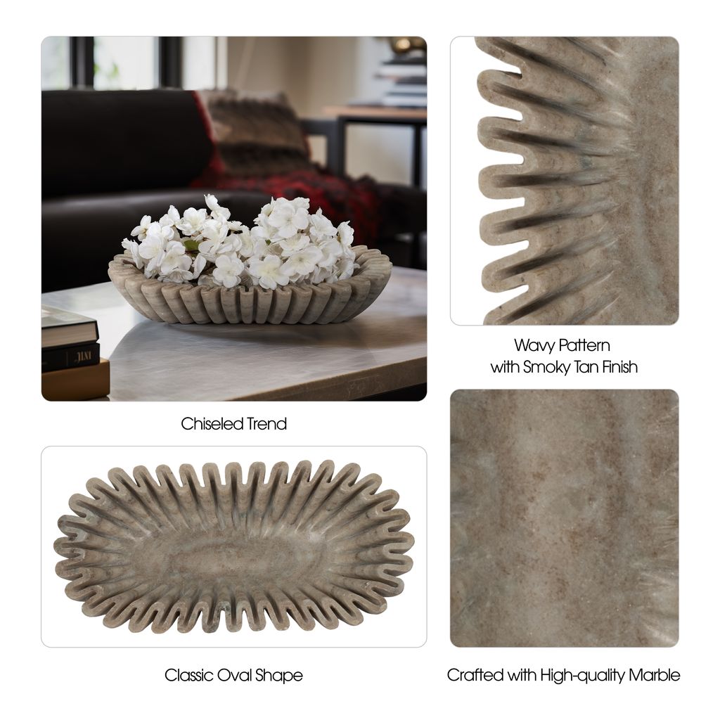 وعاء رخام متعرج بحجم 16 بوصة - لون بني