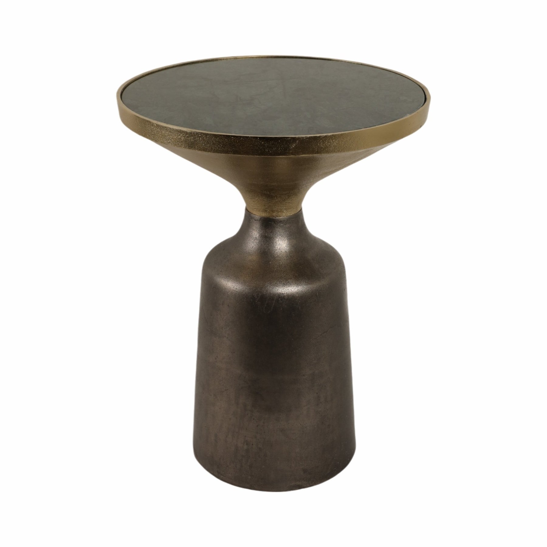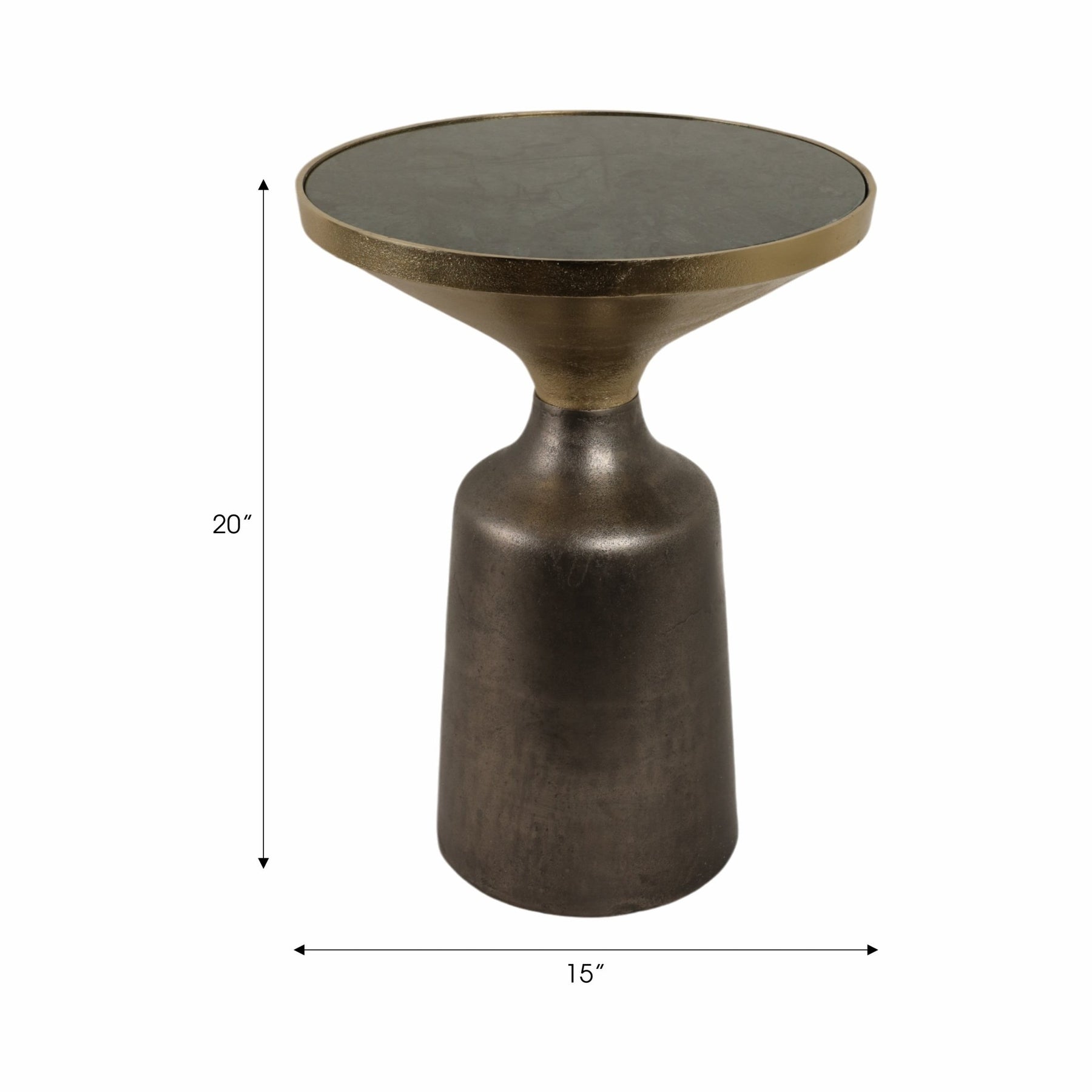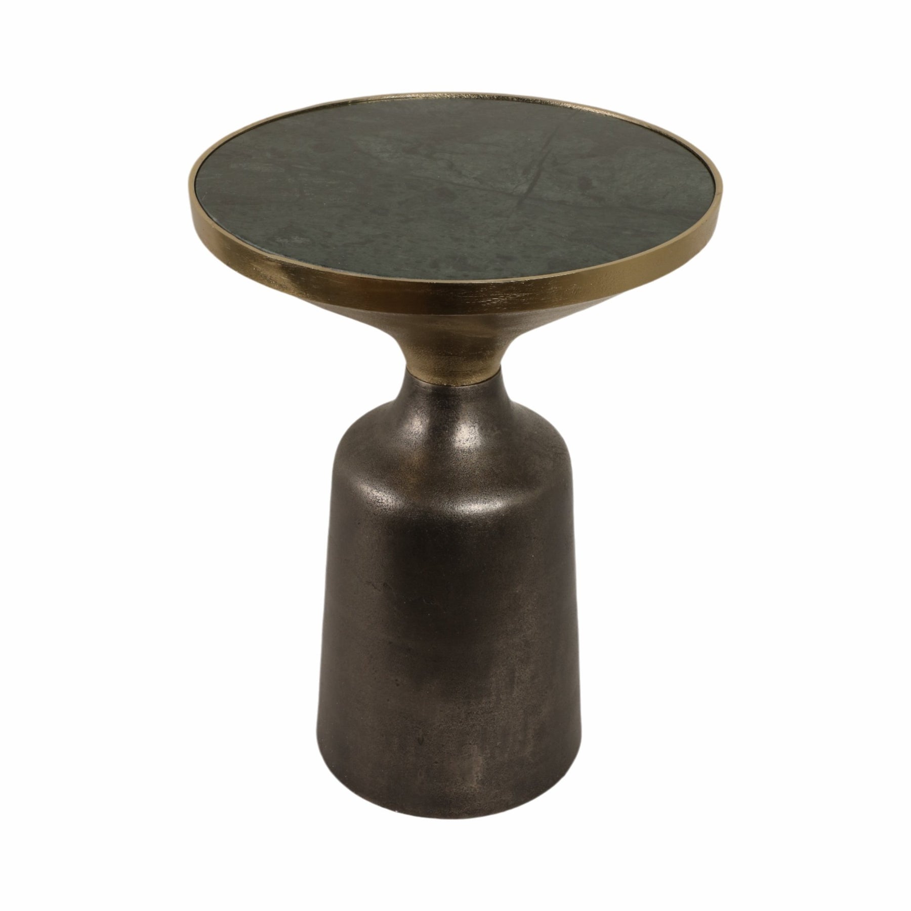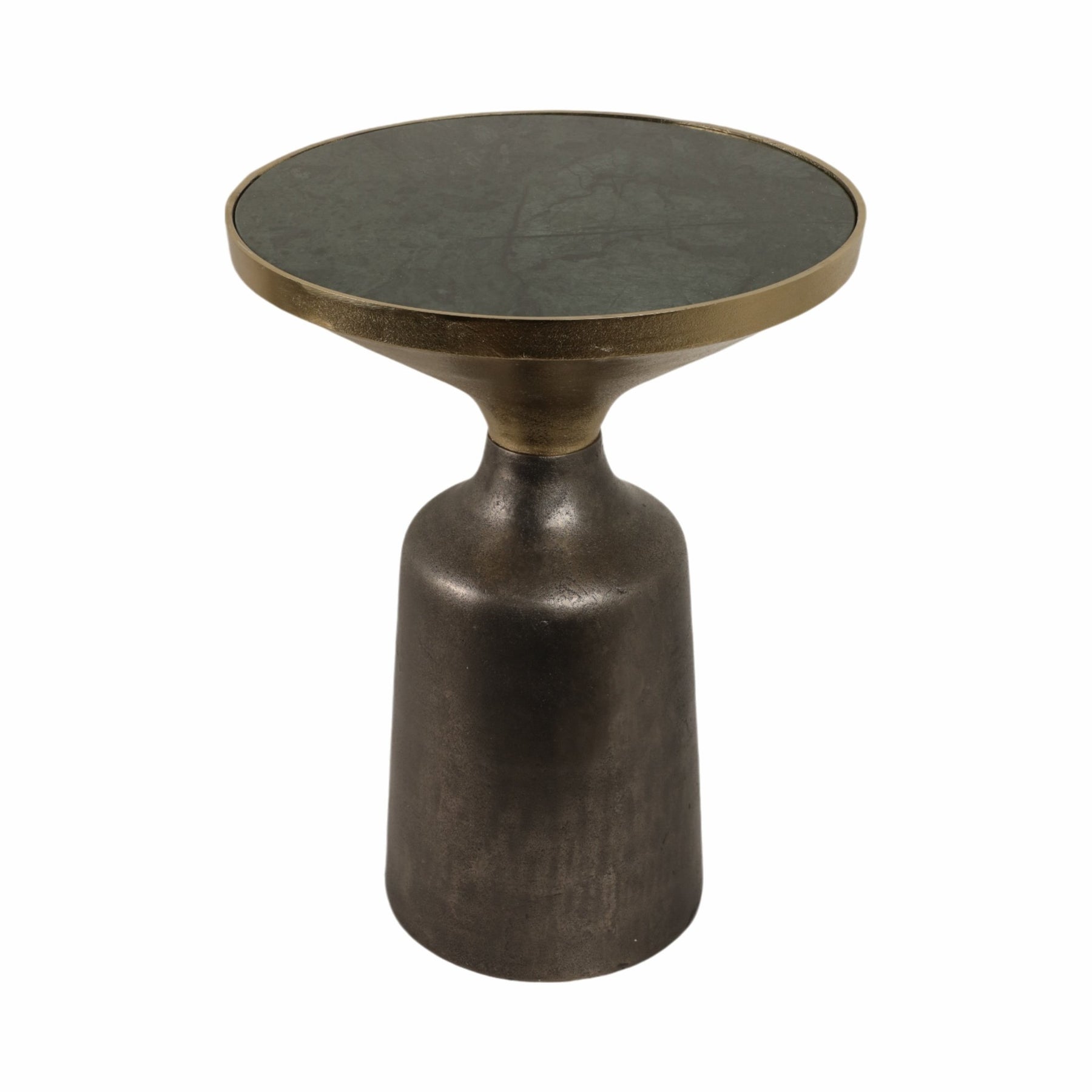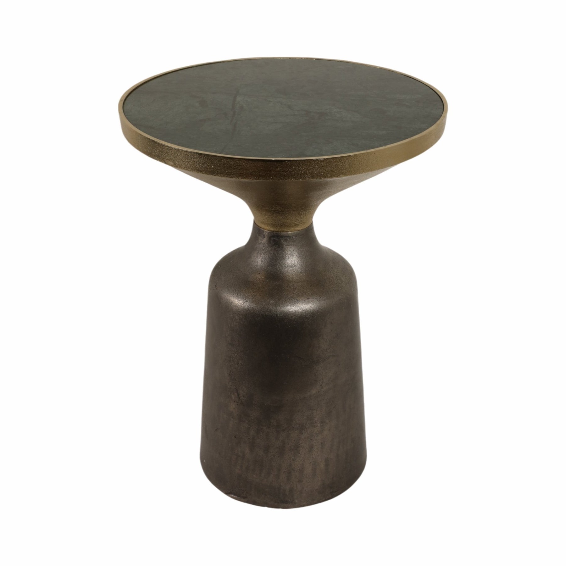 20" Metal Accent Table Green Marble Top, Multi - Al Rugaib Furniture