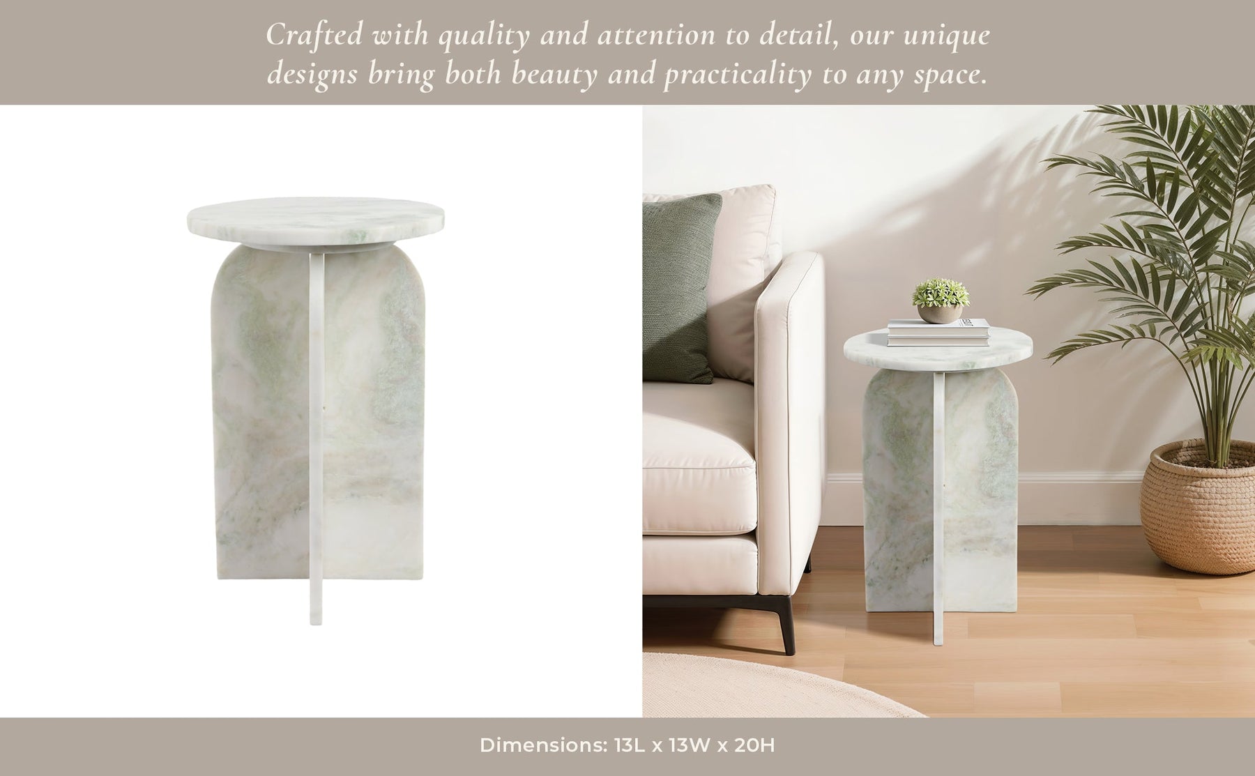 طاولة جانبية دائرية من الرخام مقاس 20x13 بوصة