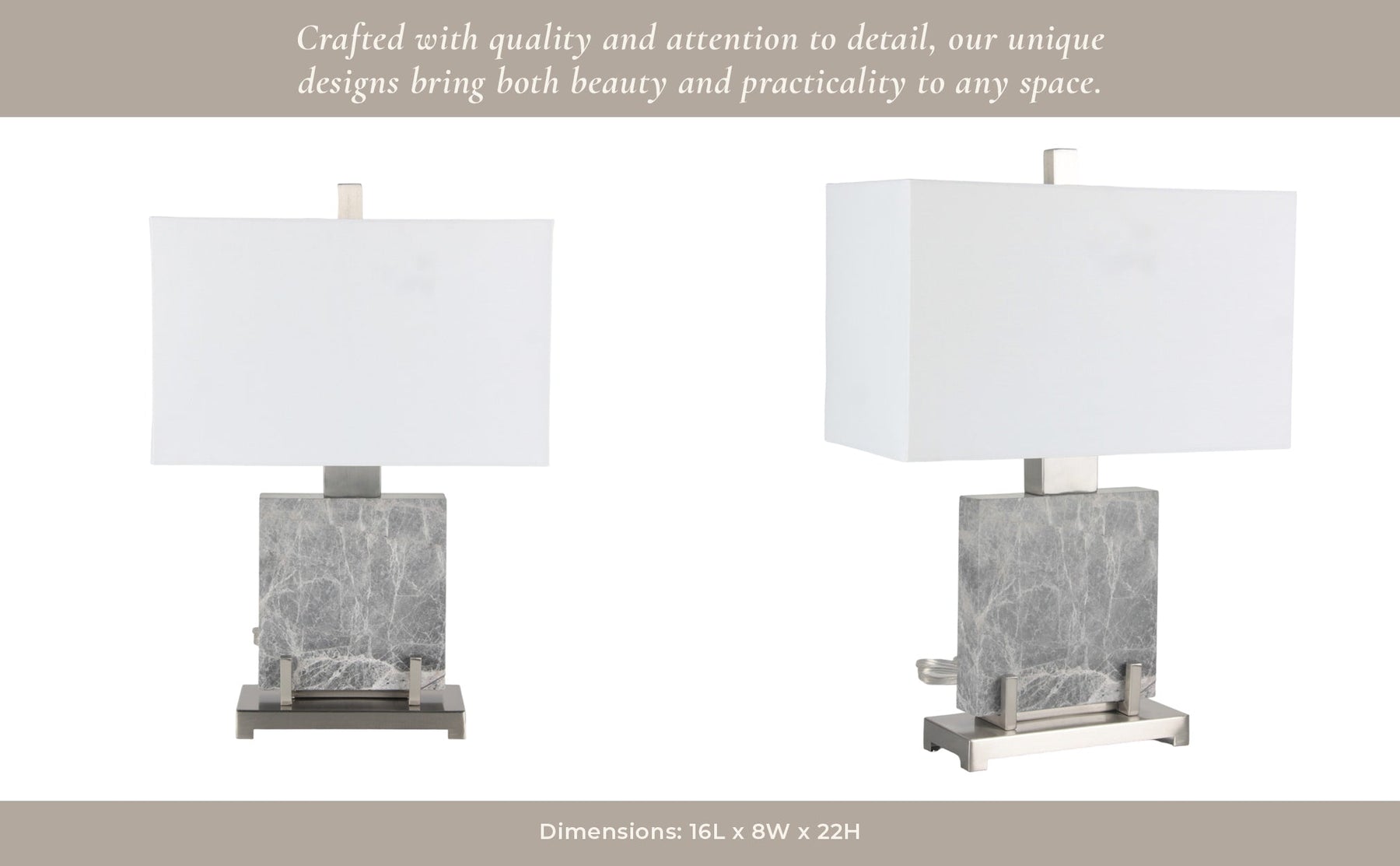 22" Lazio Grey Marble Lamp - Al Rugaib Furniture
