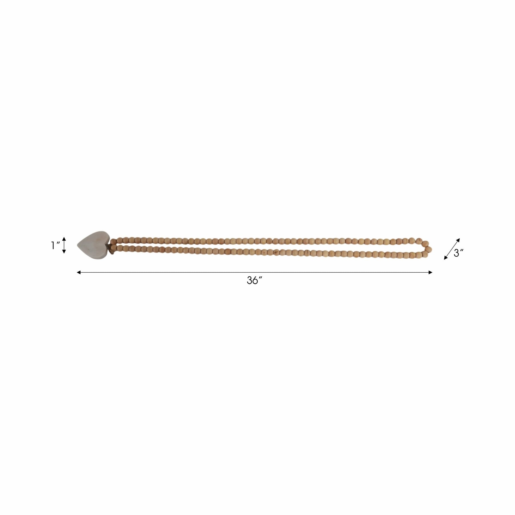 سلسلة خرز خشبية مزينة بقلب رخامي بطول 36 إنش