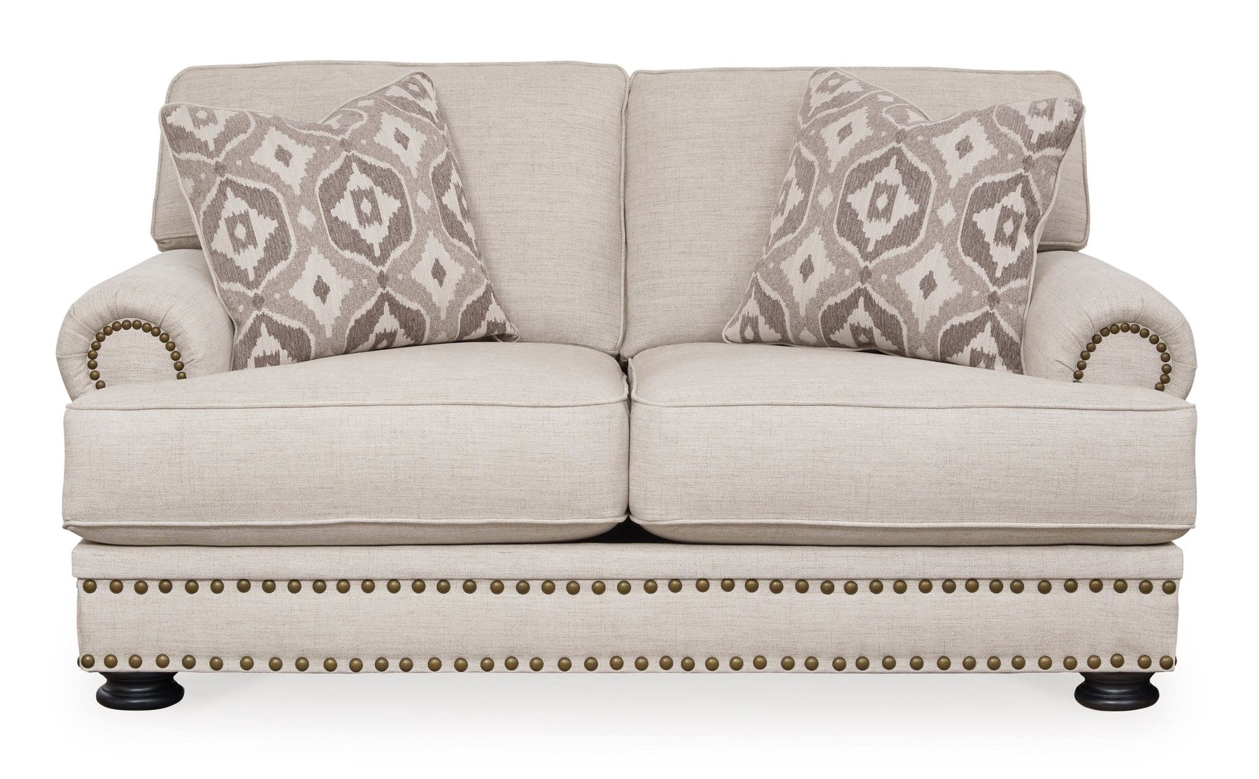 تحدث عن المظهر الجميل. إن أريكة Merrimore ذات المقعدين تجعل الناس يقعون في حبها. فهي ليست سهلة على العين فقط، بل تتميز أيضًا بالجودة والمضمون، وذلك بفضل لمساتها المزخرفة على شكل مسامير وتنجيدها الذي يشبه الكتان وأرجلها المزخرفة الجديدة. وهناك مساحة كافية لاحتضان شخص مميز أو الاسترخاء بمفردك.