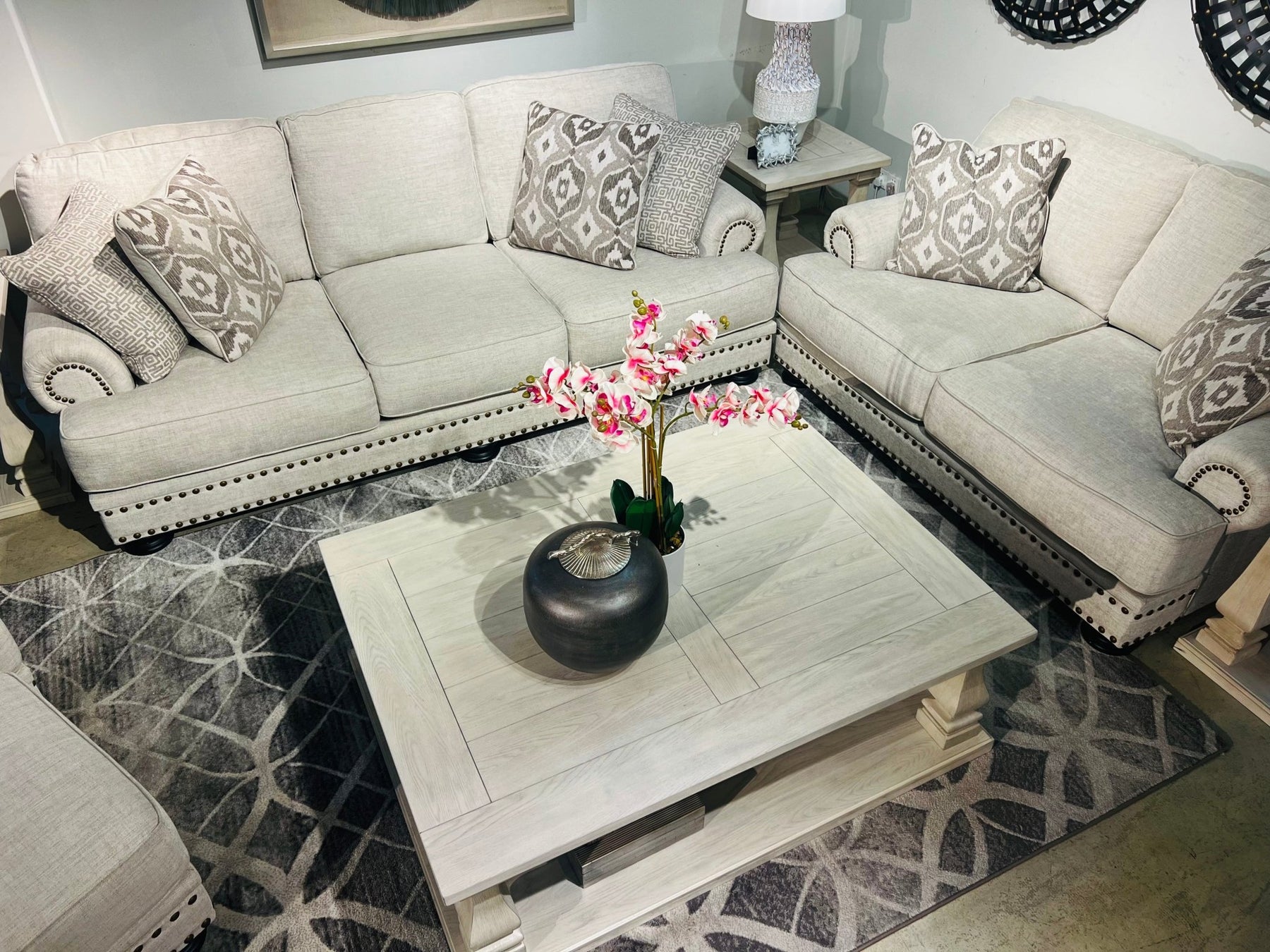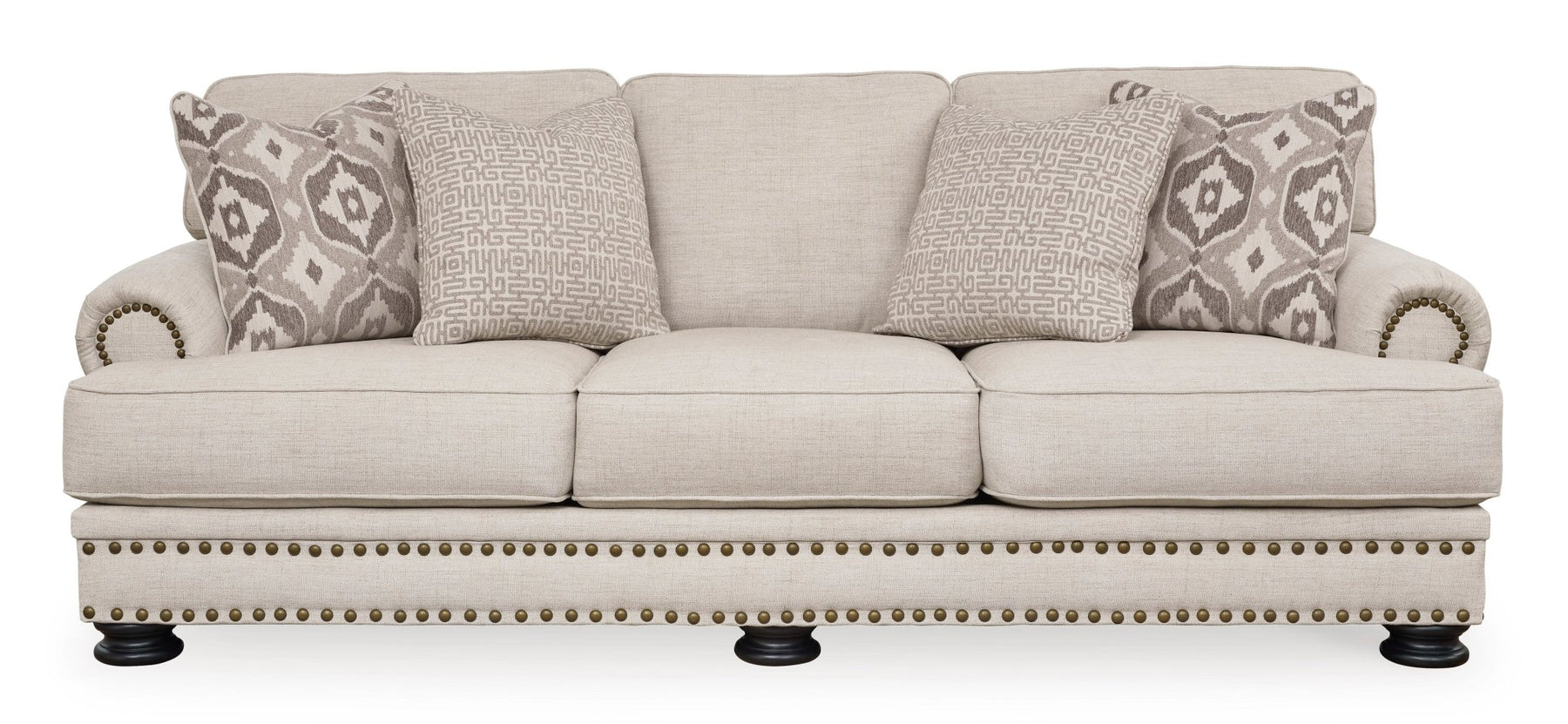 إطار محكم الزوايا؛ وسائد مقعد وظهر قابلة للعكس؛ وسائد ظهر قابلة للعكس مع لمسات حاشية؛ وسادة إسفنجية عالية المرونة مغلفة بألياف بوليستر سميكة؛ وسائد مميزة متضمنة؛ وسائد بمزيج من ألياف الريش؛ تنجيد من البوليستر/البوليستر الشنيل/الرايون؛ ساق دوارة مزخرفة؛ نظام قاعدة المنصة يقاوم الترهل 3 مرات أفضل من نظام الزنبرك بعد 20000 دورة اختبار من خلال توفير دعم أكثر توازناً؛ تحافظ قاعدة المنصة الناعمة على مظهر محكم وخالٍ من التجاعيد بدون انخفاضات أو ترهلات يمكن أن تحدث بمرور الوقت مع أسس الزنبرك المتعرجة
