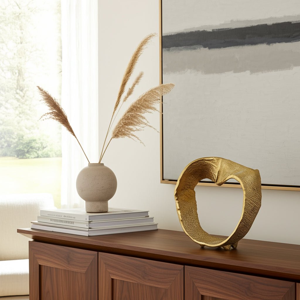 Metal, 10" Twisted Hammered Ring, Gold - Al Rugaib Furniture