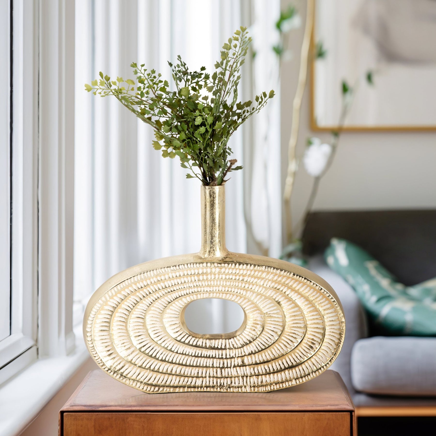 METAL, 12" TRIBAL CUT OUT VASE, GOLD - Al Rugaib Furniture