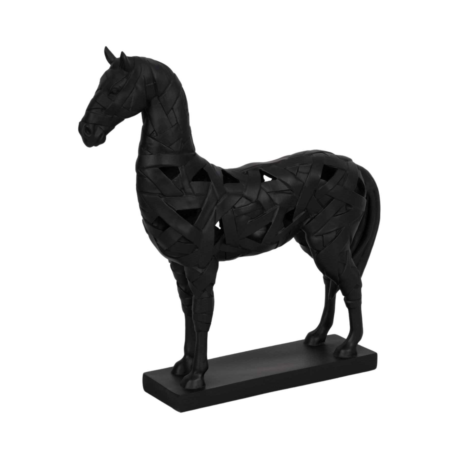 17" Horse Sculpture On Base, Black - Al Rugaib Furniture