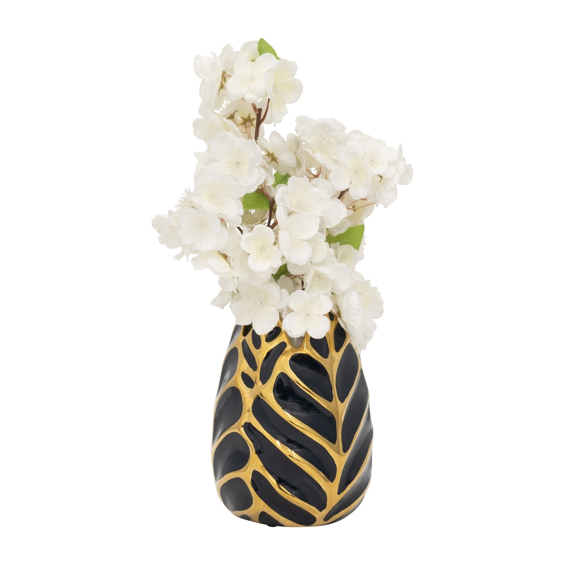 CERAMIC 8" LEAF VASE, DRK NAVY/GOLD - Al Rugaib Furniture