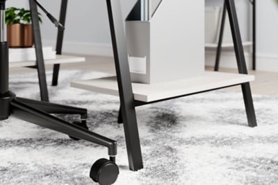 هل تحبين المظهر الريفي الحضري؟ اجعلي ذلك لصالحك مع مكتب Bayflynn المنزلي المصمم بشكل جميل. إنه اختيار رائع في أثاث المكتب المنزلي، فهو يتميز بشعور ريفي لا لبس فيه بفضل اللمسة النهائية البيضاء واللمسات المعدنية. يمنحك هذا المكتب البسيط الأنيق مع أرفف تخزين مفتوحة وأرجل خشبية الكثير من الخيارات عند العمل على الواجبات المنزلية أو القيام بمشاريع فنية أو مجرد الاسترخاء.