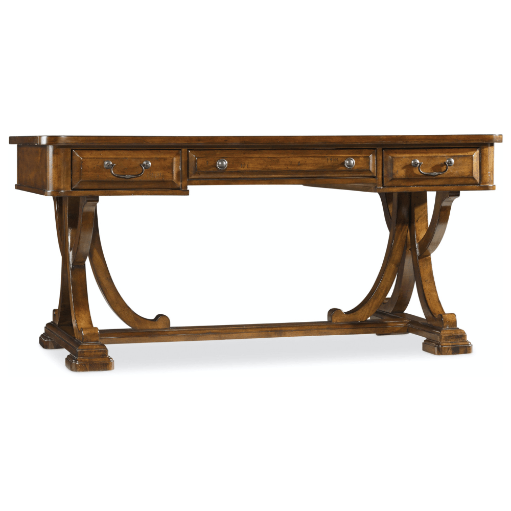 يتميز مكتب الكتابة Tynecastle بنكهة ريفية مستوحاة من ركوب الخيل، ويحتوي على قاعدة تشبه العارضة المتقاطعة تذكرنا بالعوارض الخشبية في الحظيرة، وترتفع بأقدام ضخمة. مصنوع من خشب الحور الصلب وقشرة ألدر المزخرفة، ويتميز بلون كستنائي دافئ. يسمح الدرج المركزي ذو الواجهة المنسدلة باستخدام لوحة المفاتيح. درجان للمرافق مع 3 فتحات و2 فاصل قابل للإزالة في كل درج. شريحة كتابة واحدة ودرج أقلام واحد للاستخدام في أي درج.