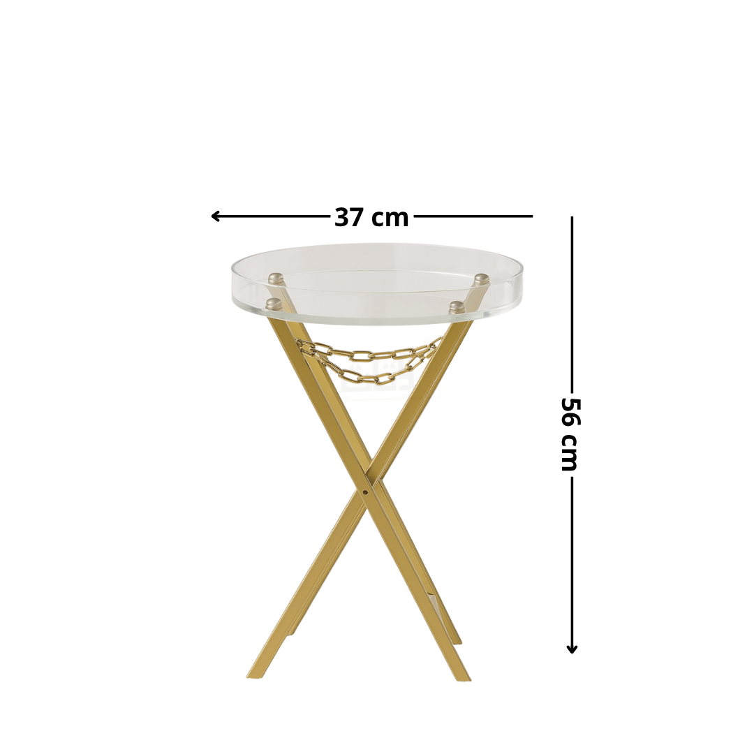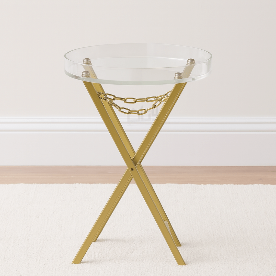 طاولة خدمة أكريلك دائرية مع قاعدة حديد ذهبية
