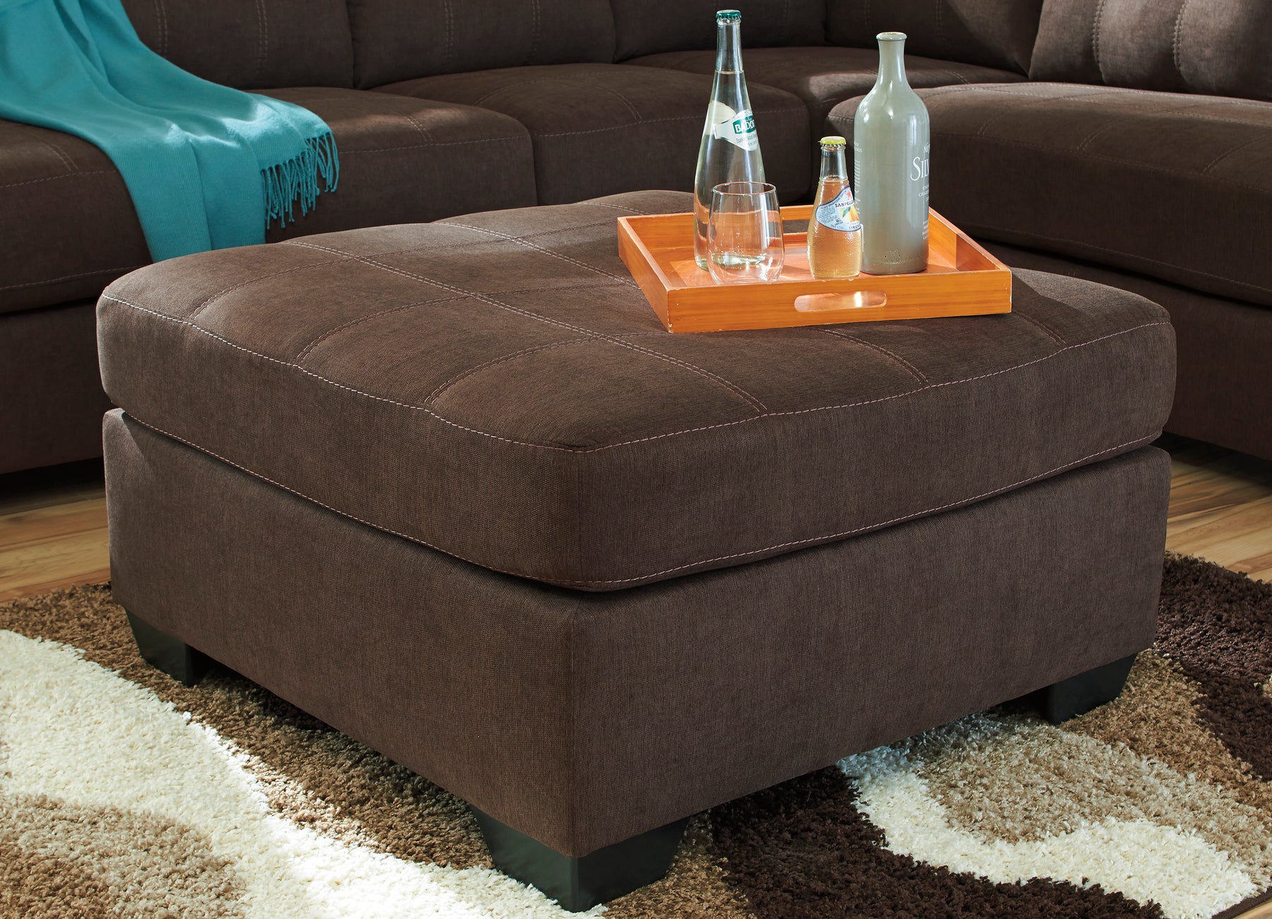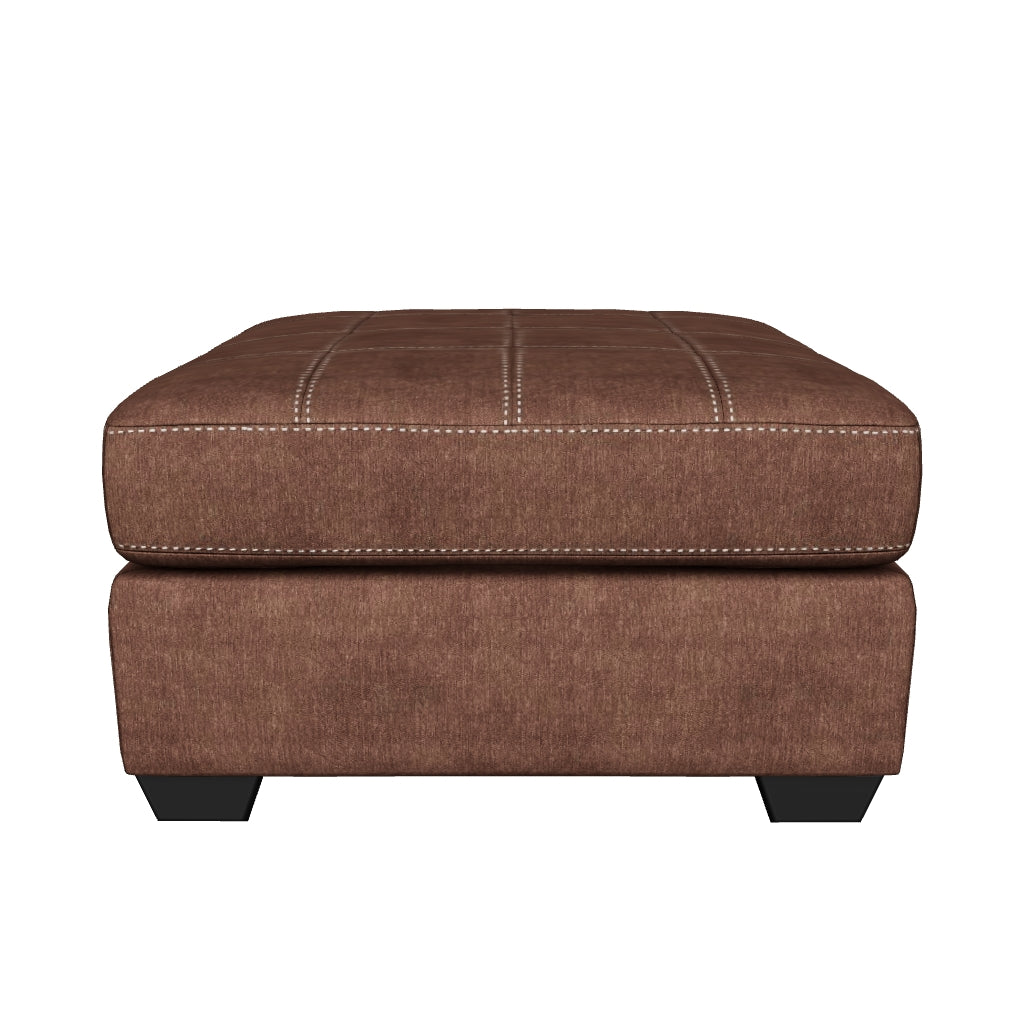 إطار محكم الزوايا؛ مبطن بشكل ثابت؛ وسادة إسفنجية عالية المرونة ملفوفة بألياف بوليستر سميكة؛ تنجيد من البوليستر/النايلون؛ أقدام سوداء مكشوفة، مسند قدم كبير الحجم