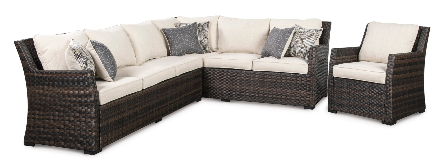 كنبة خارجية 86x264x204 سم - بني غامق وبيج