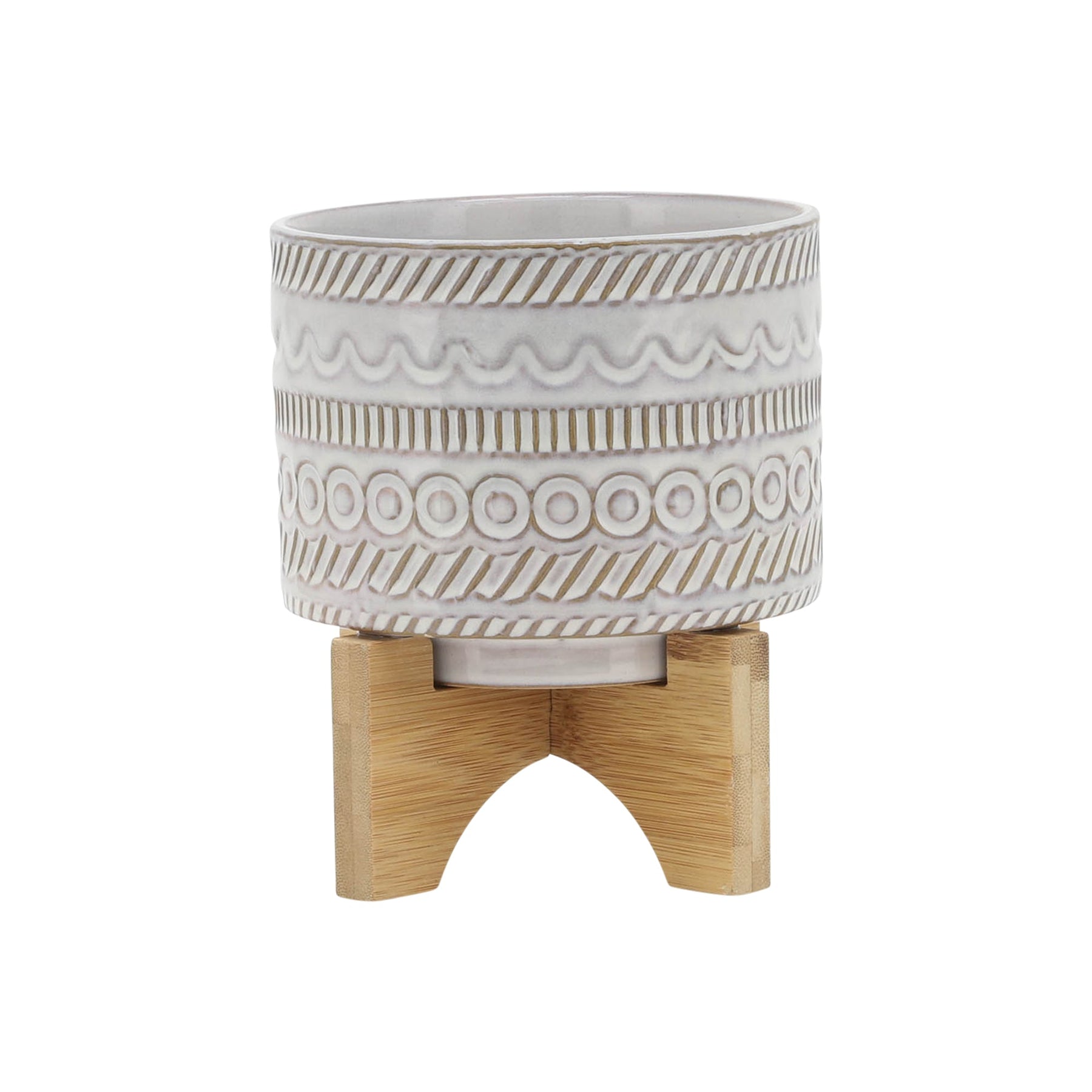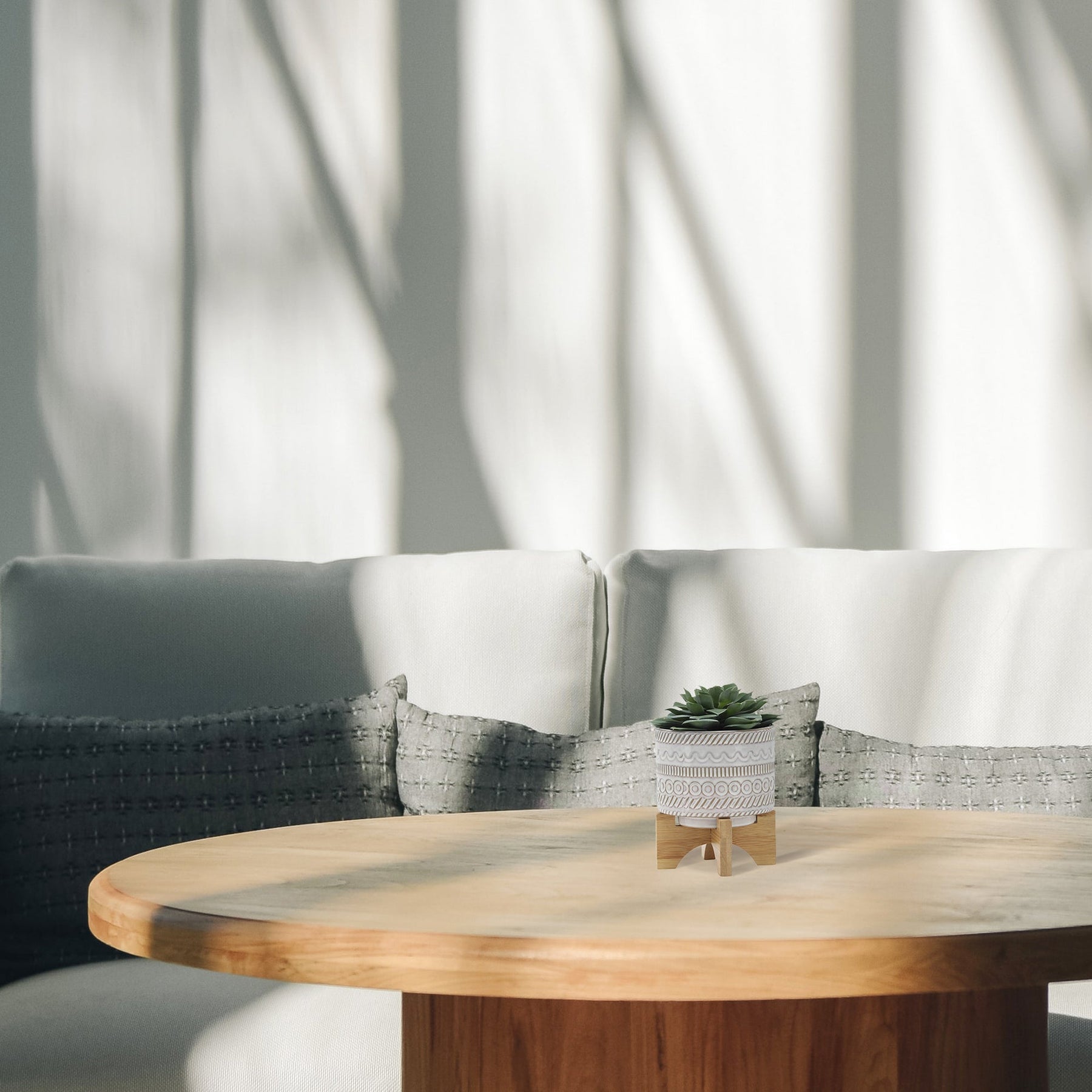 خزانة نباتية بتصميم قبلي مع قاعدة خشبية، لون بيج
