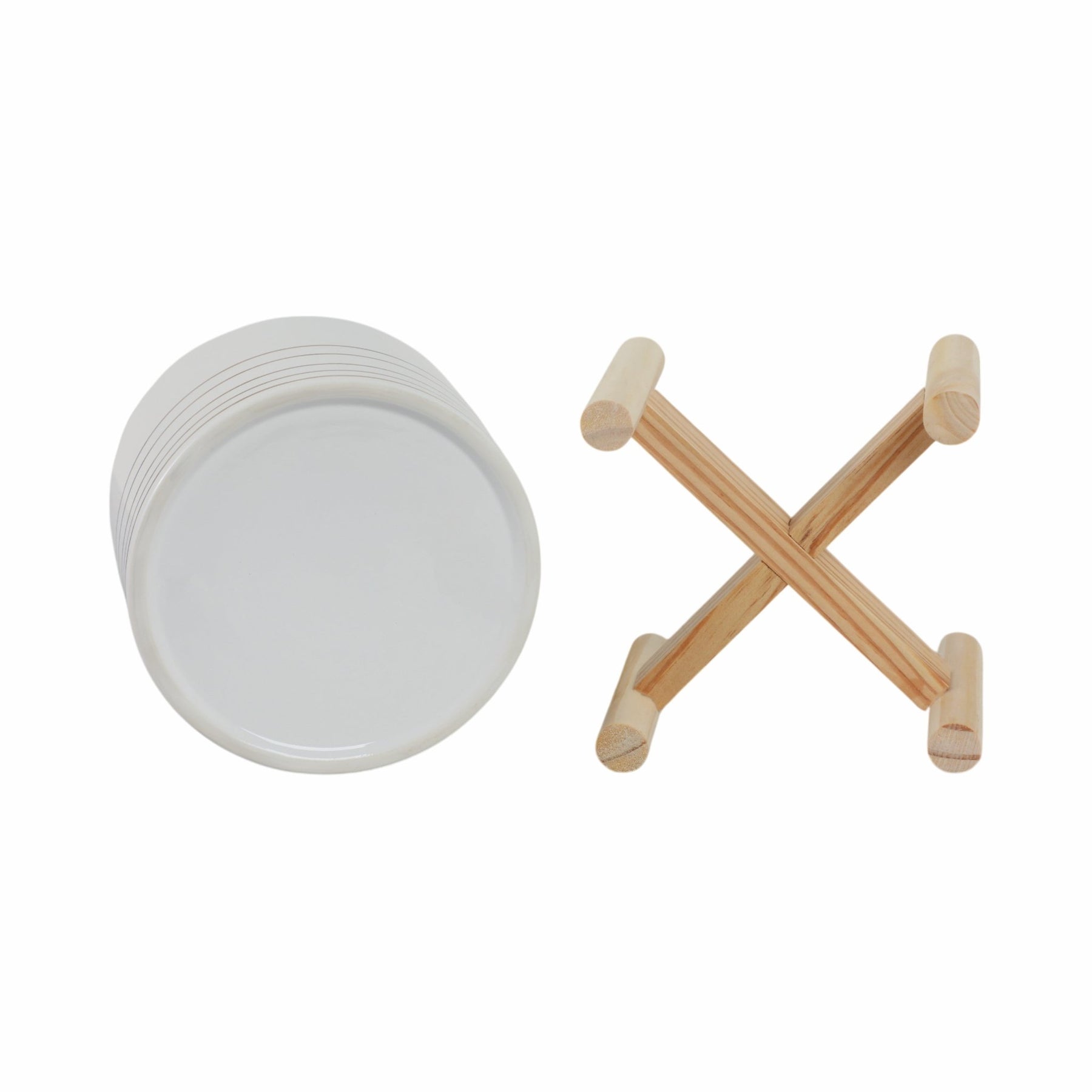 وعاء خزفي معدني بارتفاع 6 بوصات مع قاعدة خشبية