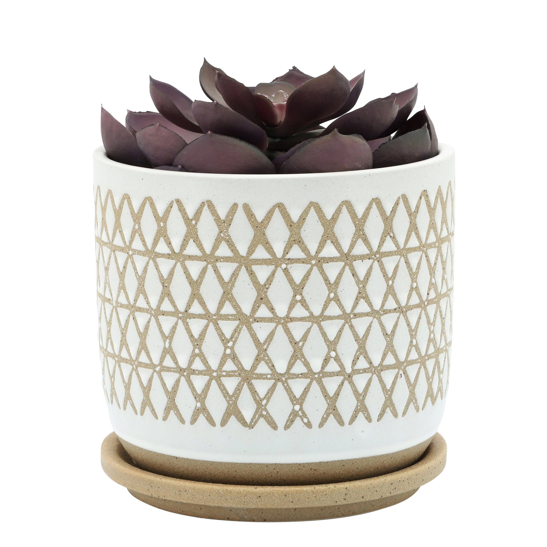 مزهرية سيراميكية بتصميم متقاطع مع طبق