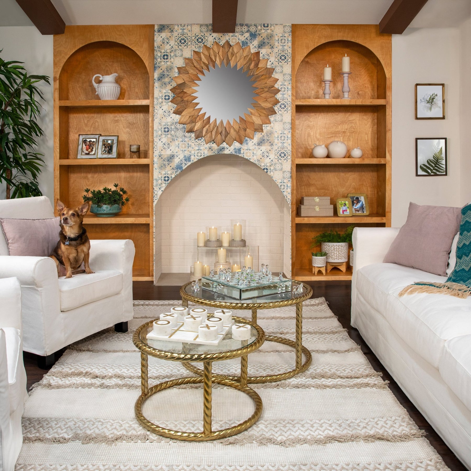 8" CHEVRON PLANTER W/ WOOD STAND, BEIGE - Al Rugaib Furniture