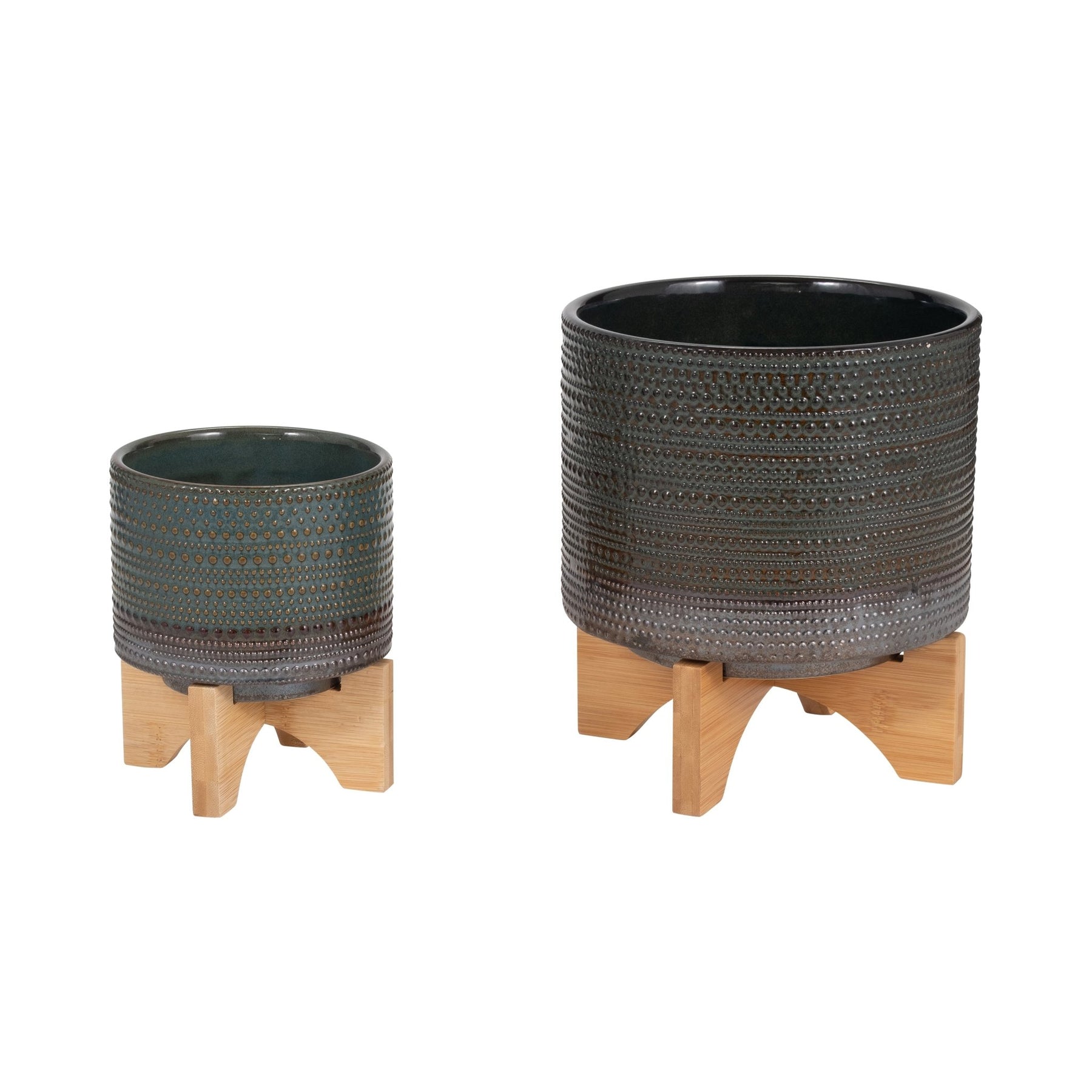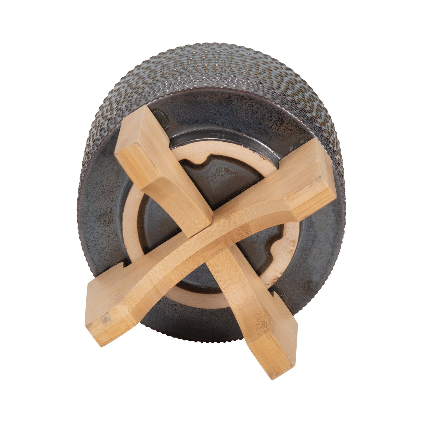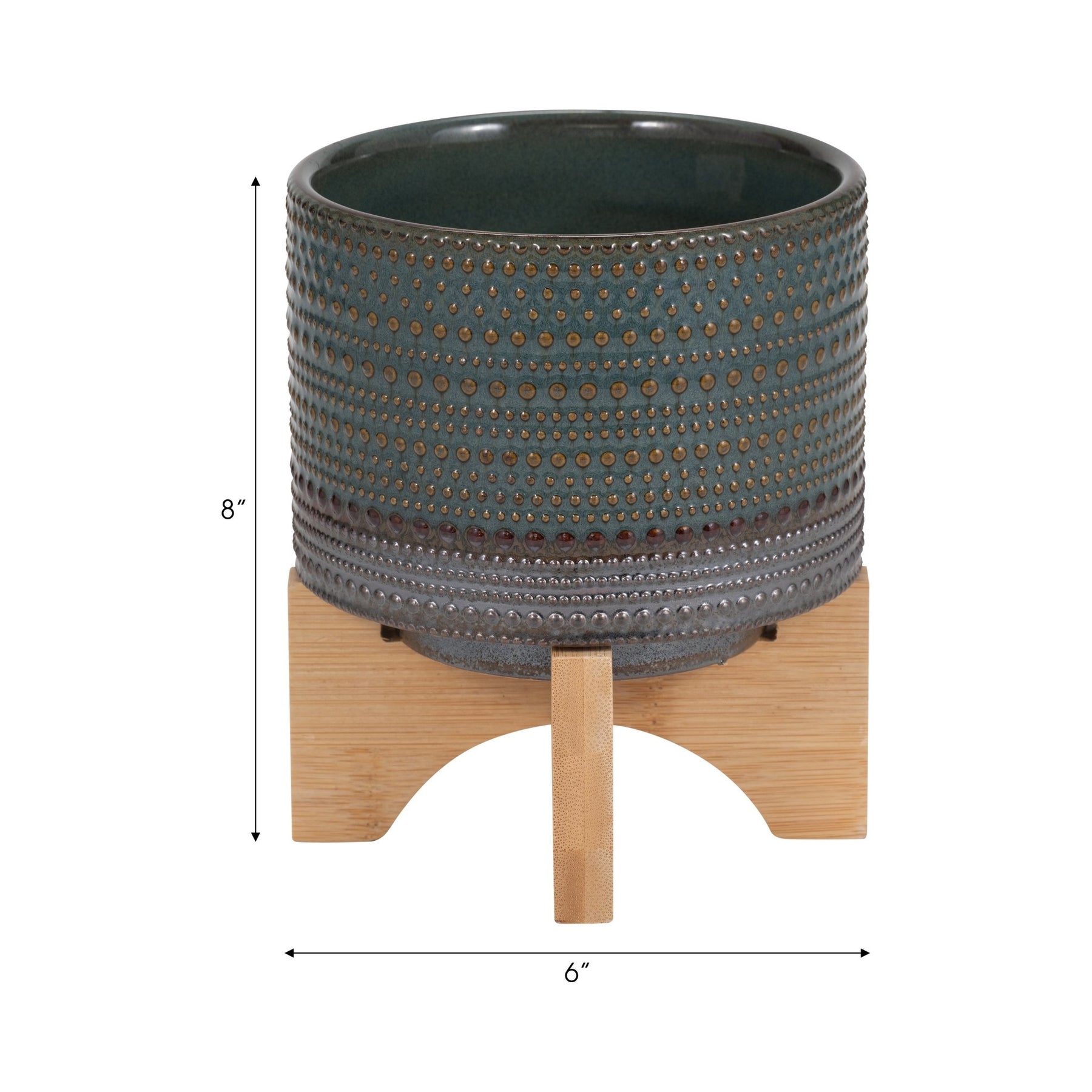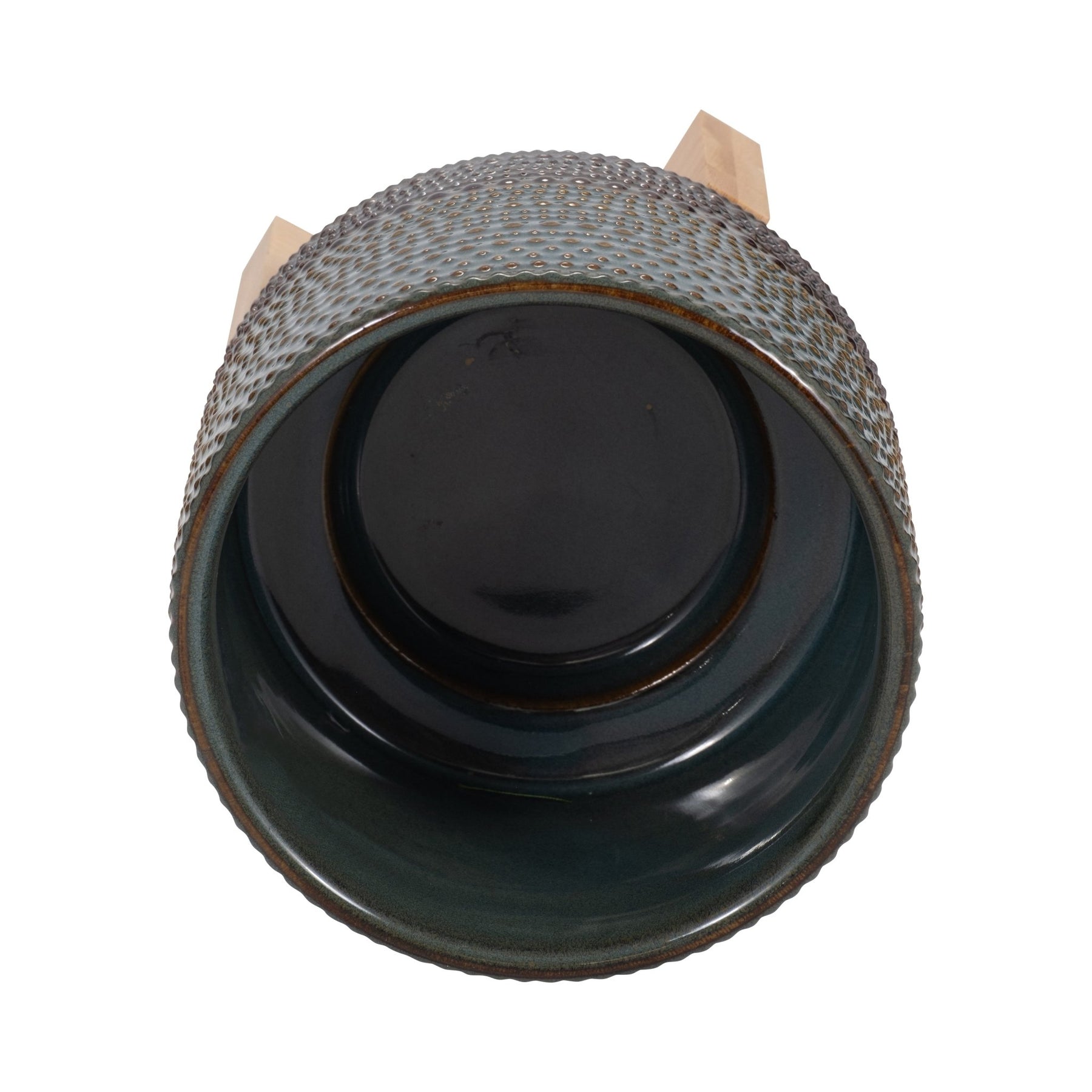 مزهرية مزخرفة بارتفاع 5 بوصات مع قاعدة خشبية