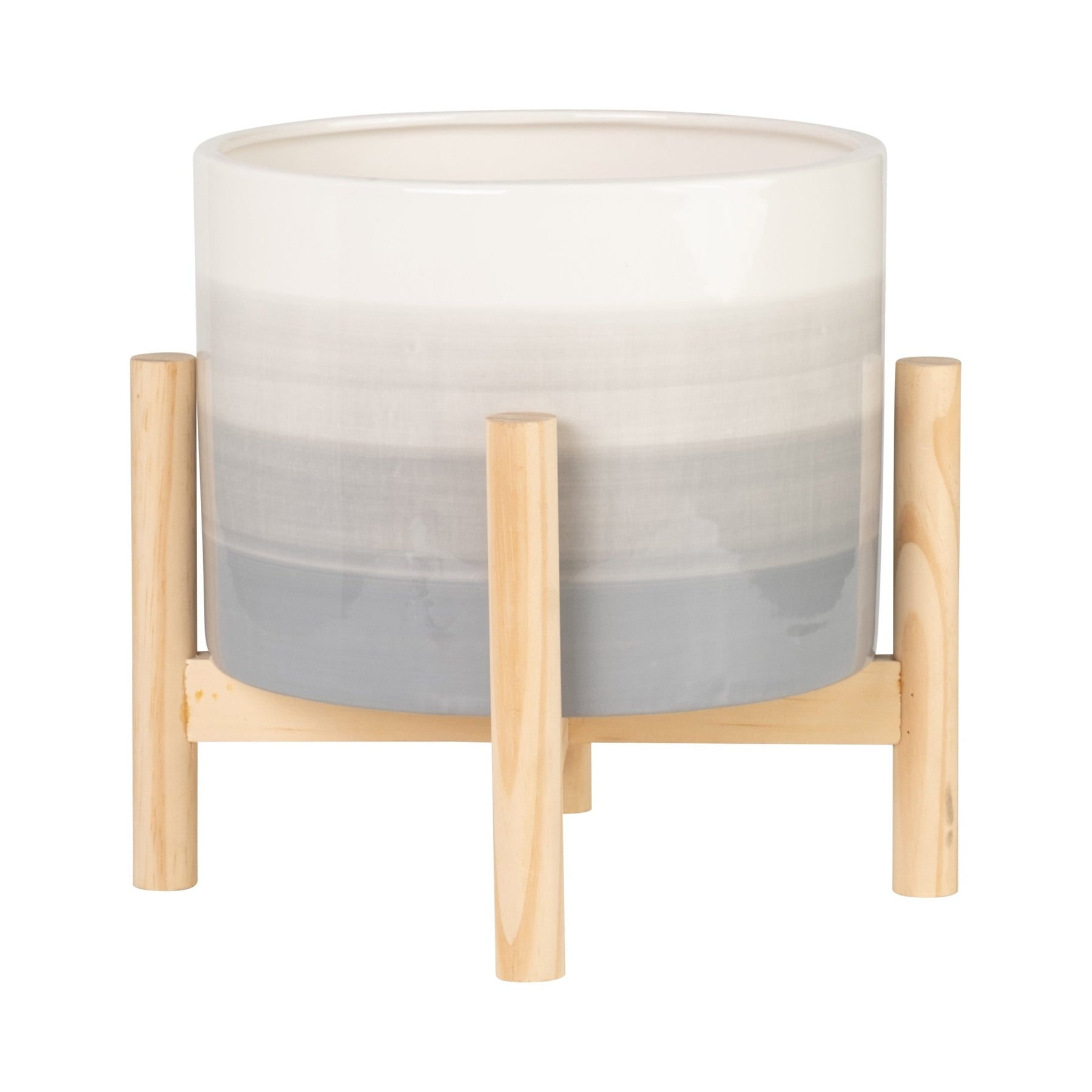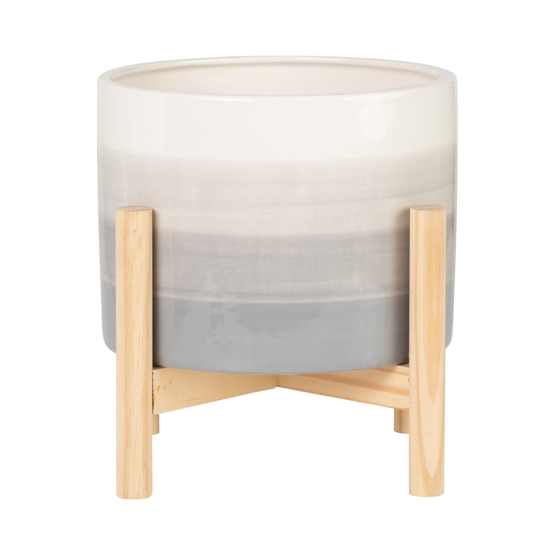 وعاء خزفي للزراعة مقاس 8 بوصات مع حامل خشبي، مزيج من اللون البيج