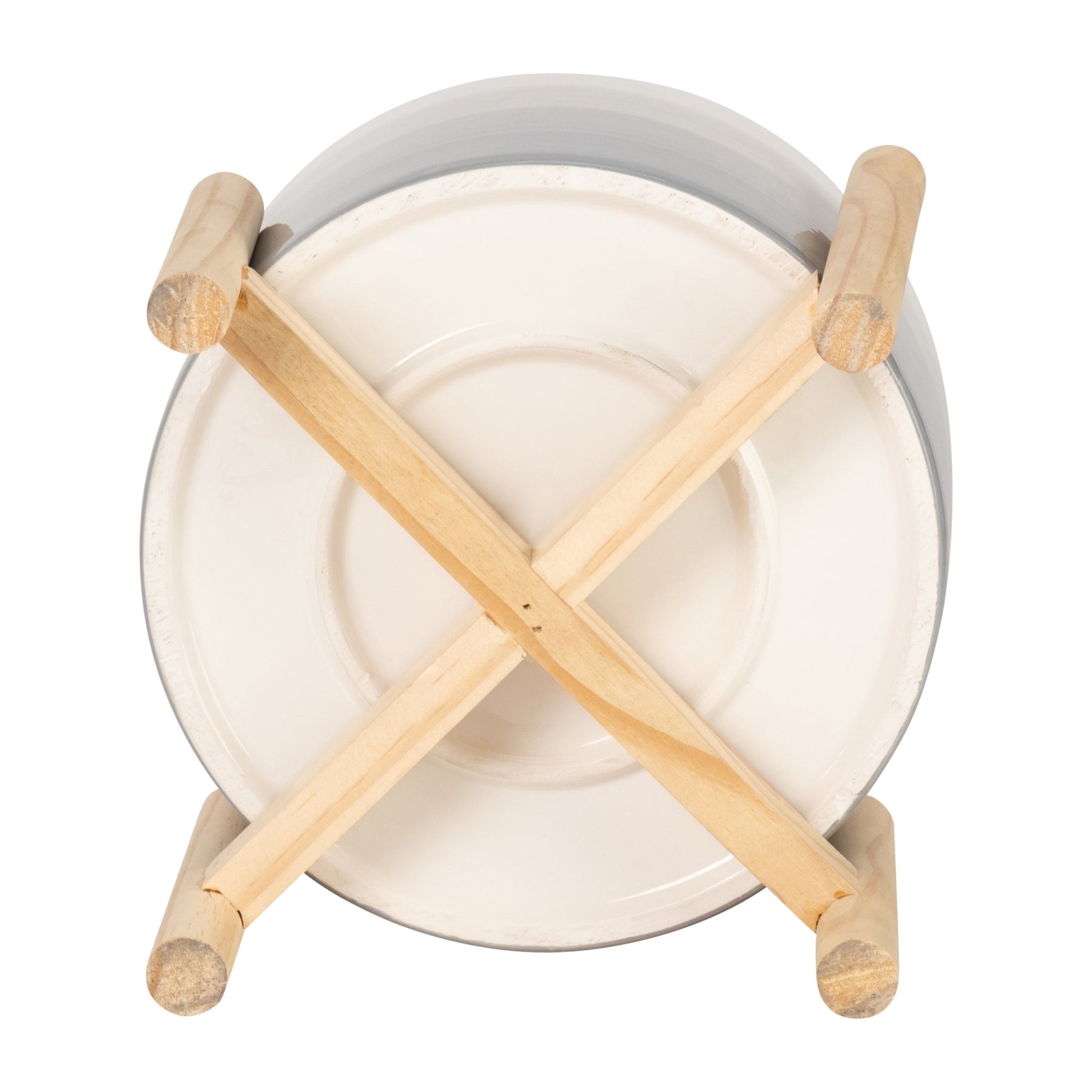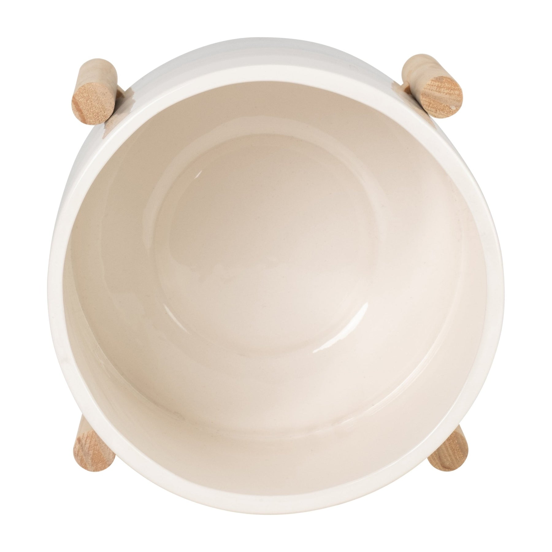 إناء سيراميك مقاس 8 بوصات مع حامل خشبي، مكون من بيج
