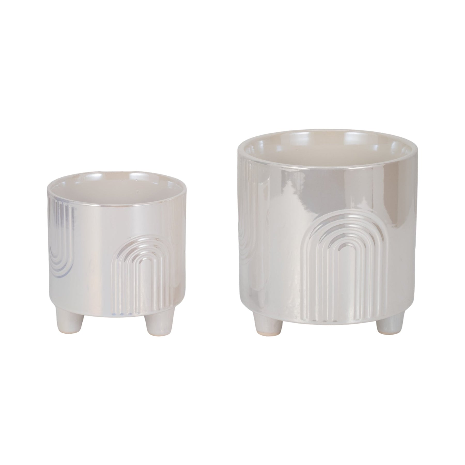 S/2 6/8" Iridescent Bravais Footed Planters, Ivory - Al Rugaib Furniture