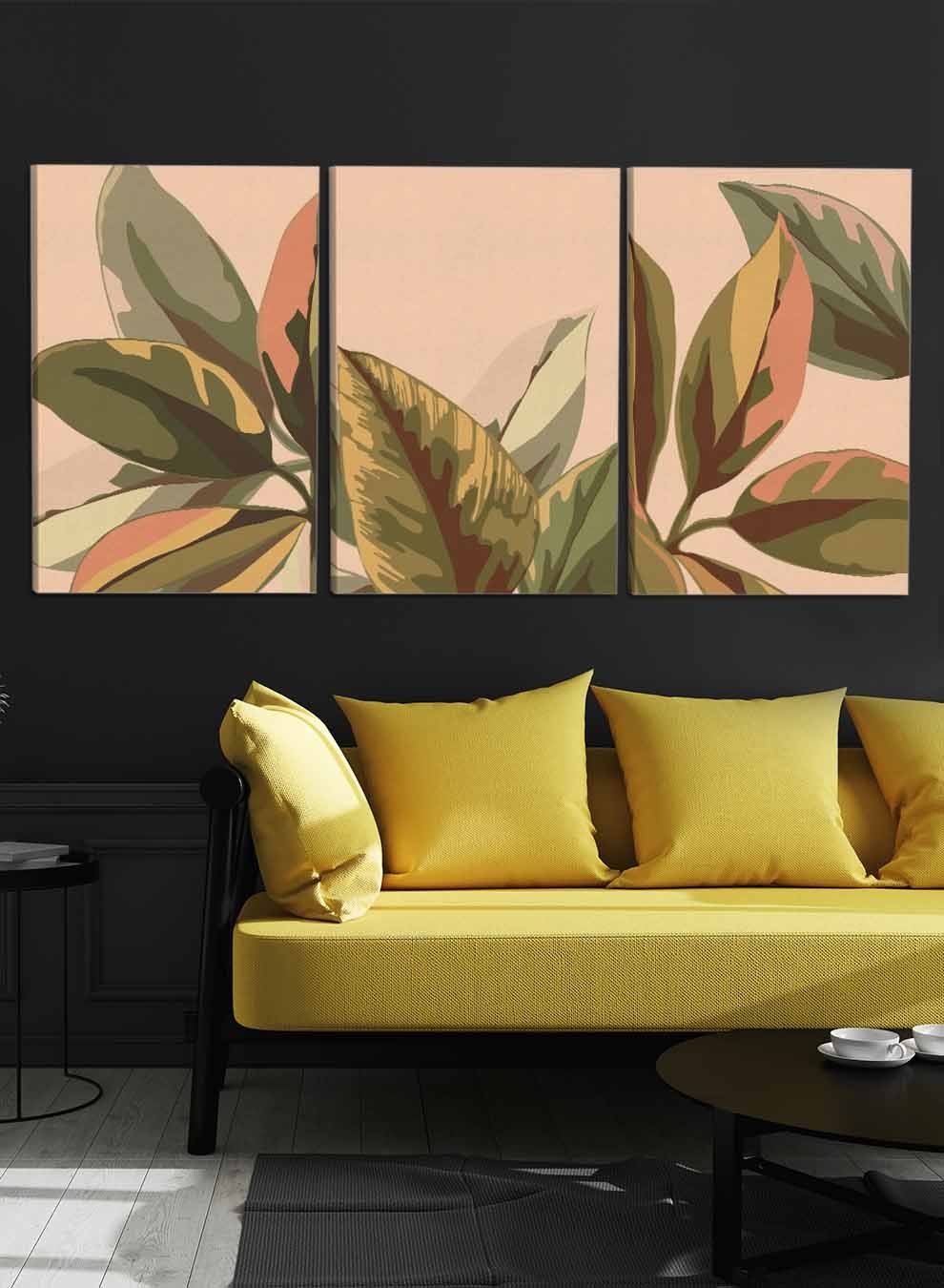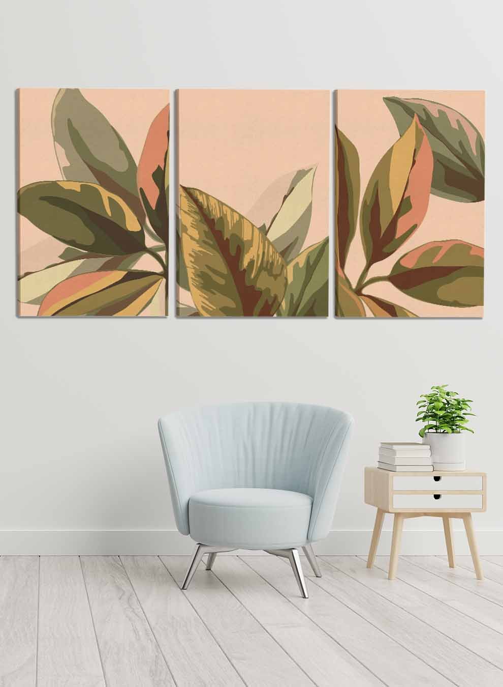 لوحات نباتات زهرية تجريدية (مجموعة من 3)