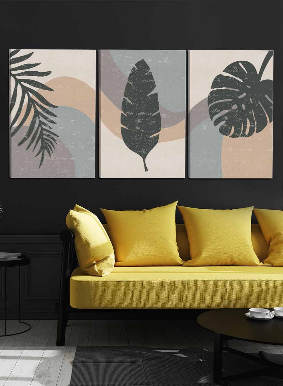 لوحات فنية تجريدية للأوراق والزهور (مجموعة من 3)
