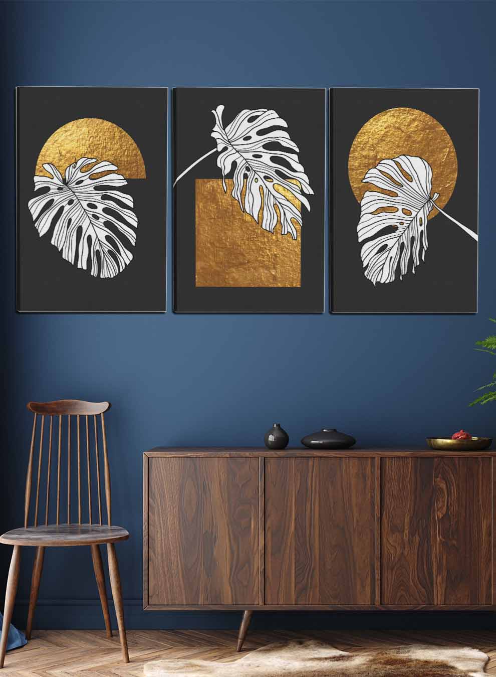لوحات أوراق تجريدية على خلفية داكنة (مجموعة من 3)