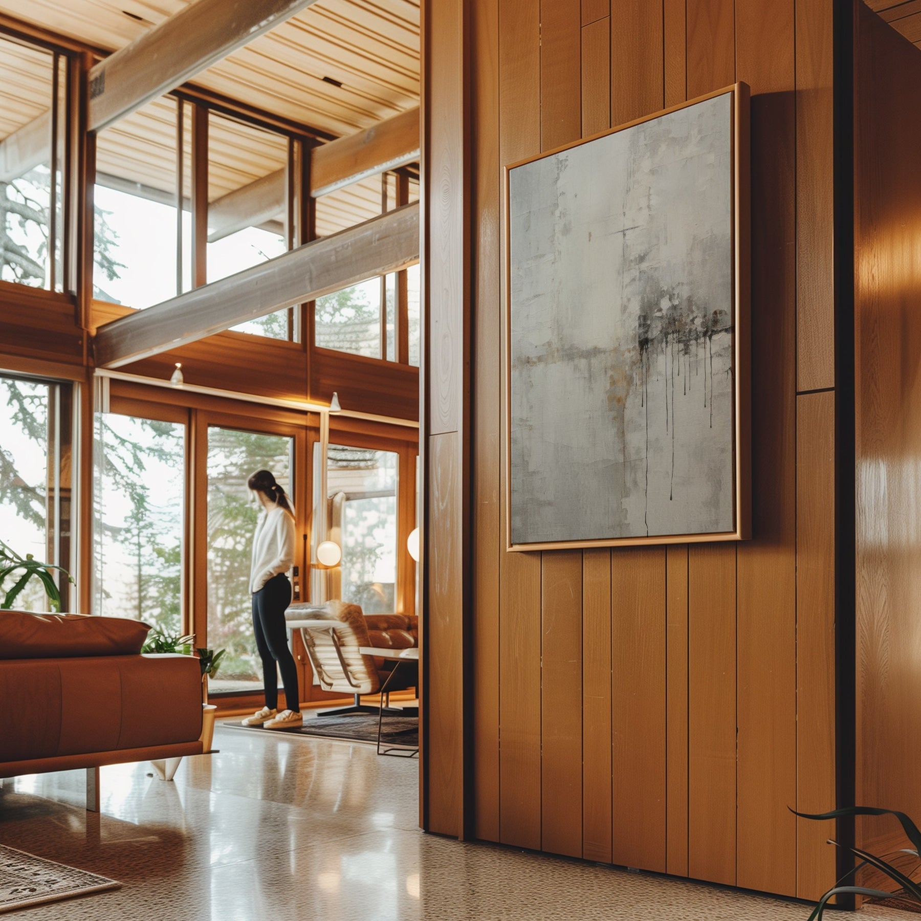فن جداري من القماش مع إطار خشبي وتصميم تجريدي CV4107