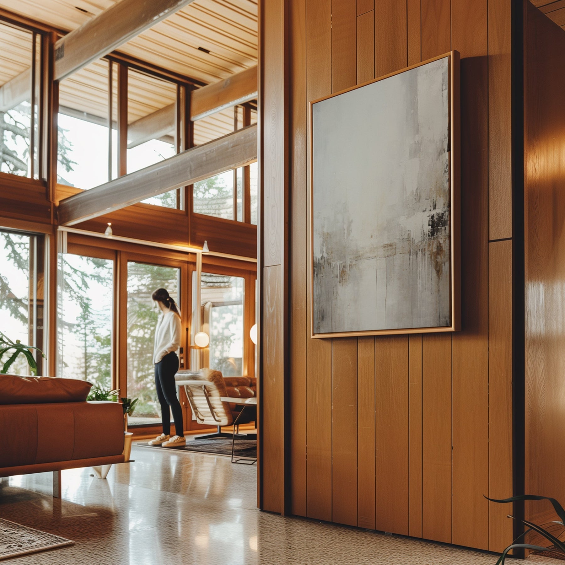 لوحة فنية قماشية بتصميم حديث مثبتة على إطار خشبي