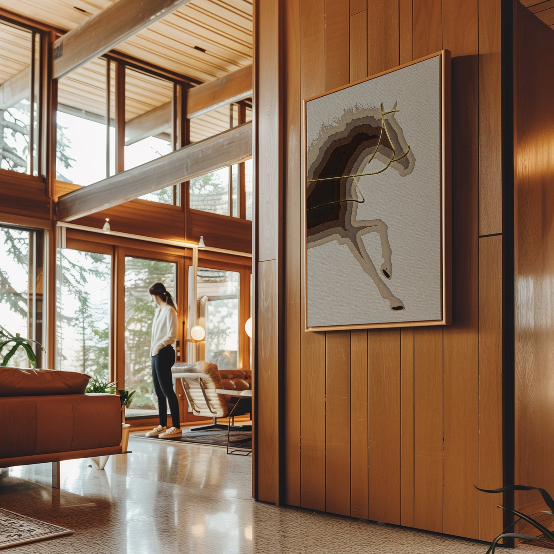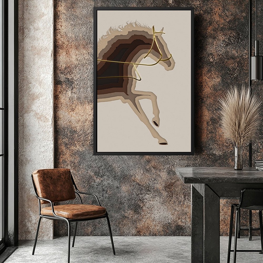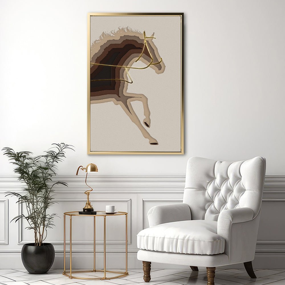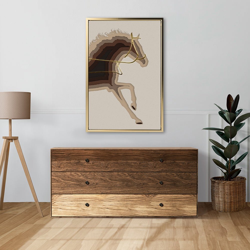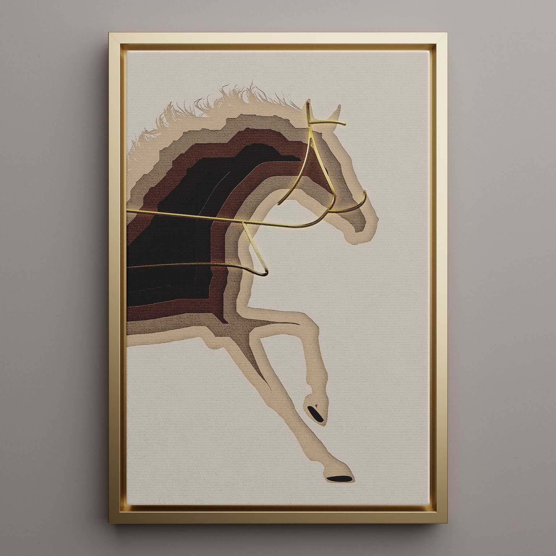لوحة فنية قماشية مطبوعة على إطار خشبي مع إطار عائم ورسمة حصان عربي CV4114