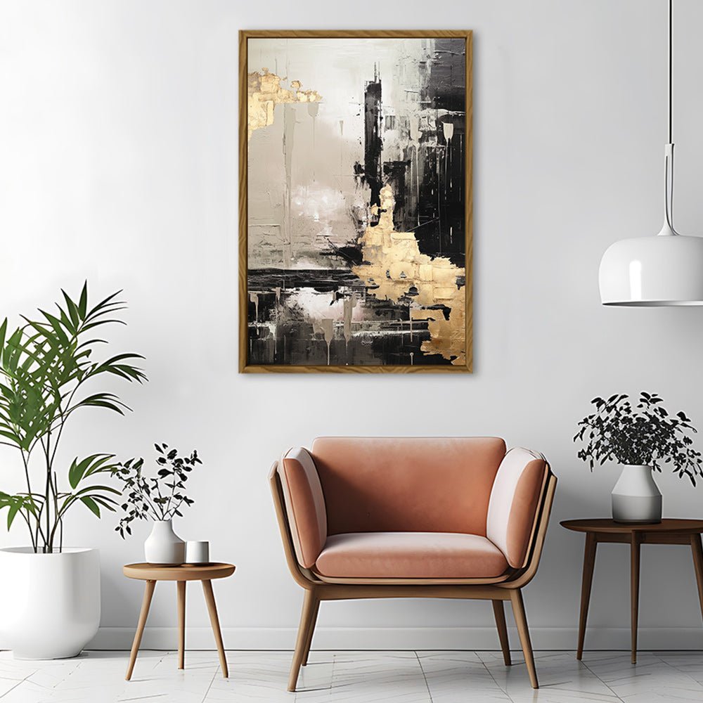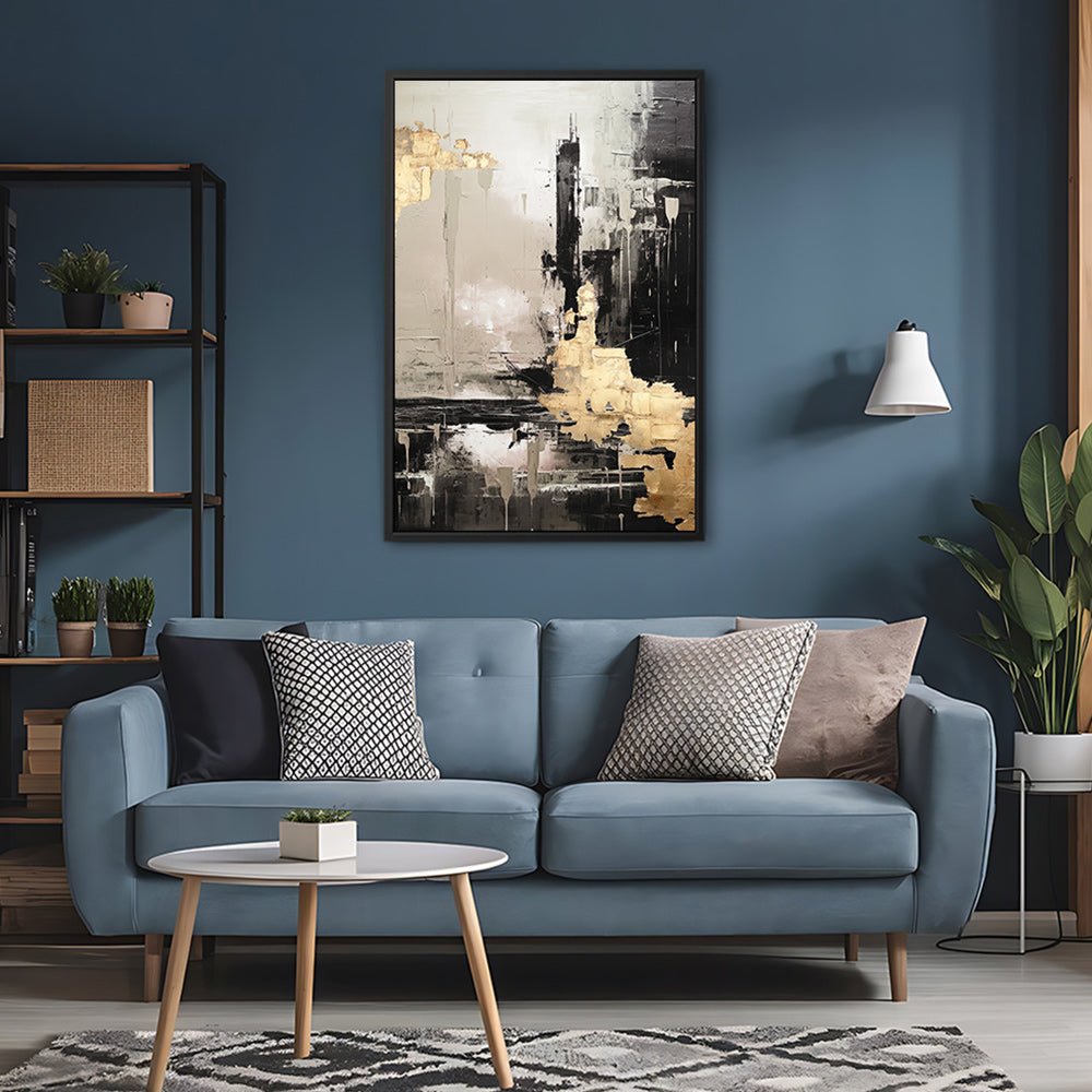 Canvas Wall Art Stretched Over Wooden Frame with Floating Frame and Black And Gold Pattern Painting CV4115Paintings & Pictures