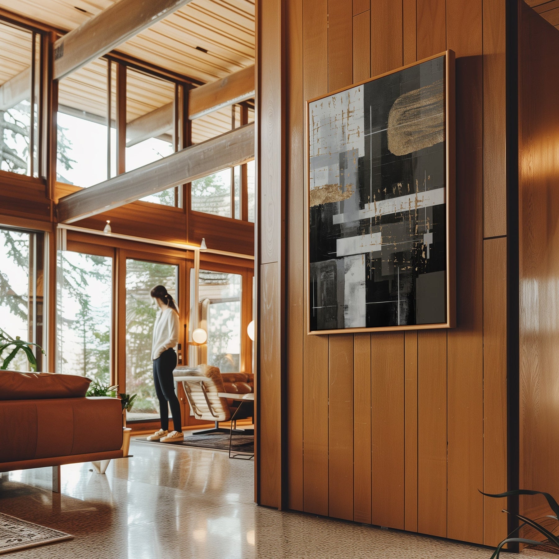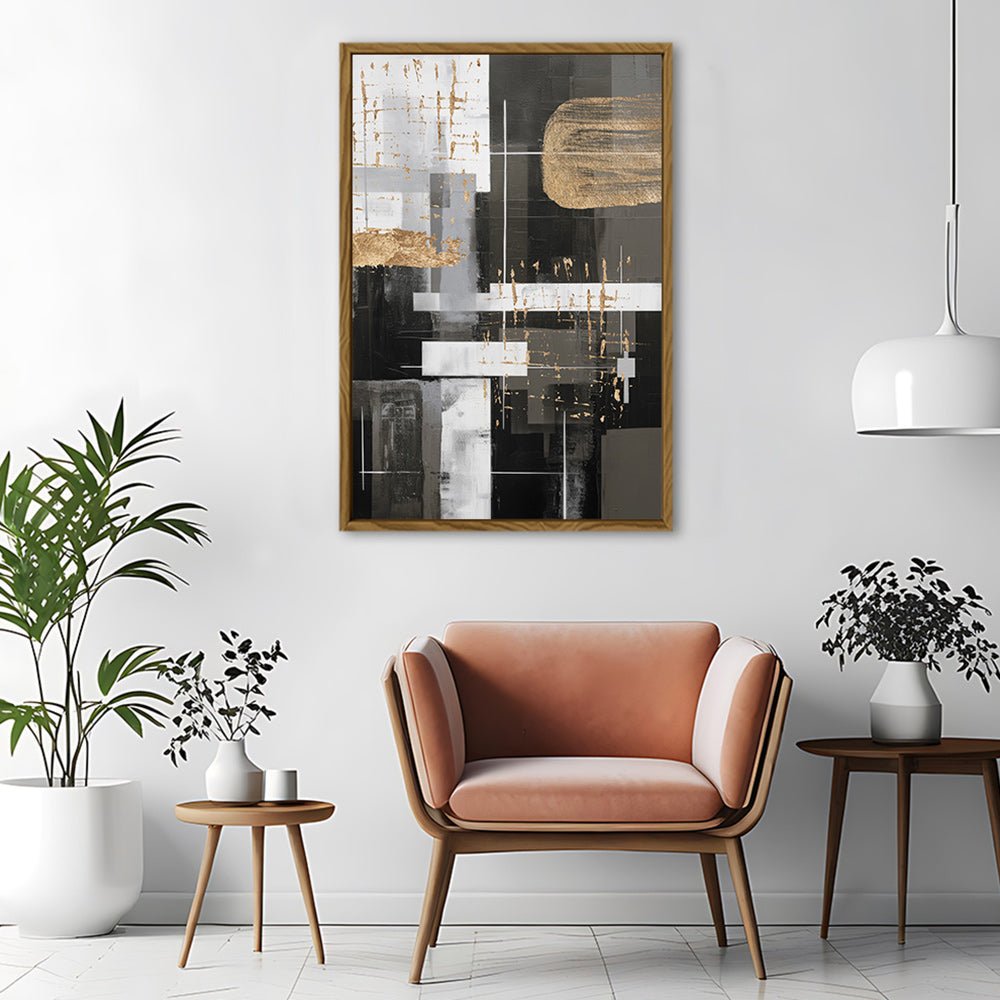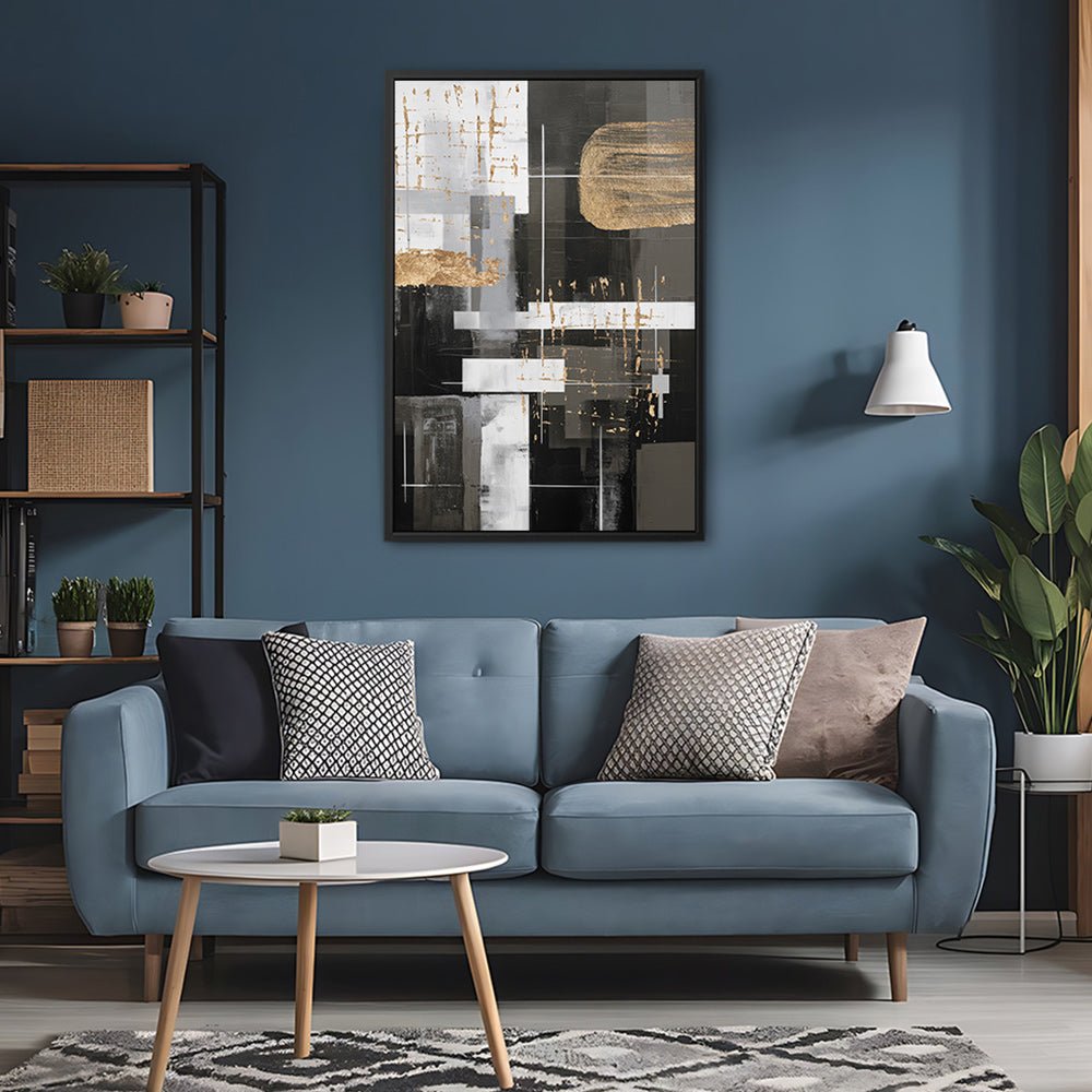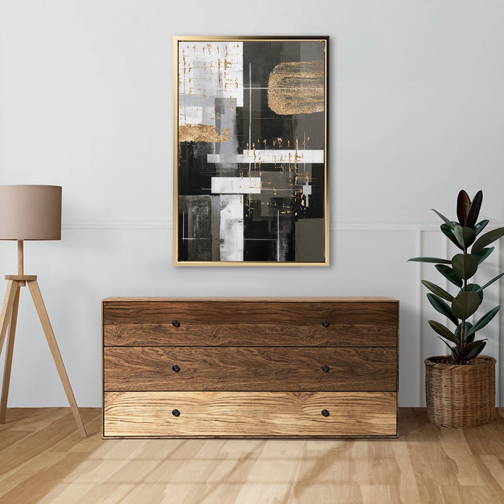 Canvas Wall Art Stretched Over Wooden Frame with Floating Frame and Black And Gold Shapes Painting CV4116Paintings & Pictures