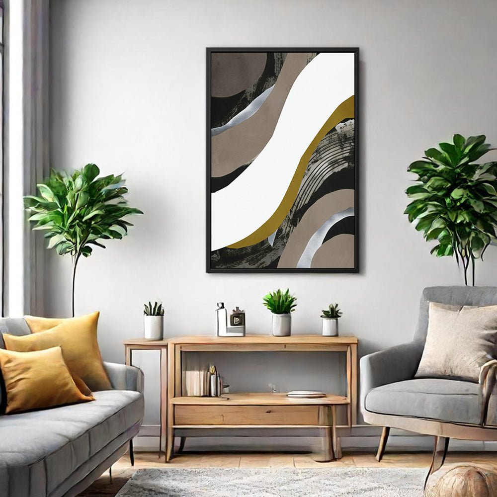 Canvas Wall Art Stretched Over Wooden Frame with Floating Frame and Brown Waves Abstract Painting CV4137Paintings & Pictures