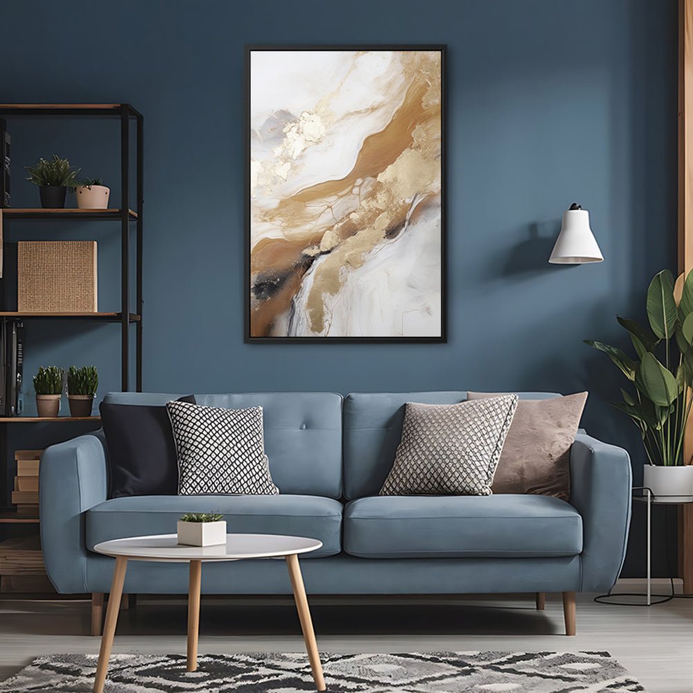 Canvas Wall Art Stretched Over Wooden Frame with Floating Frame and Gold Marble Painting CV4162Paintings & Pictures
