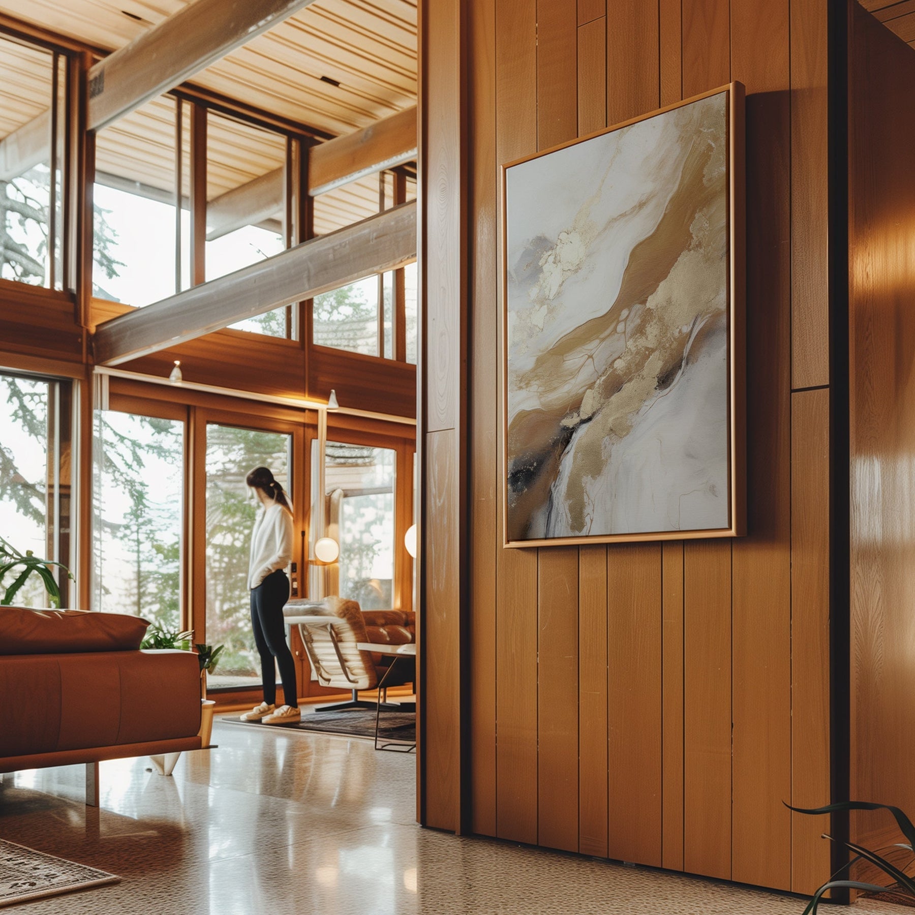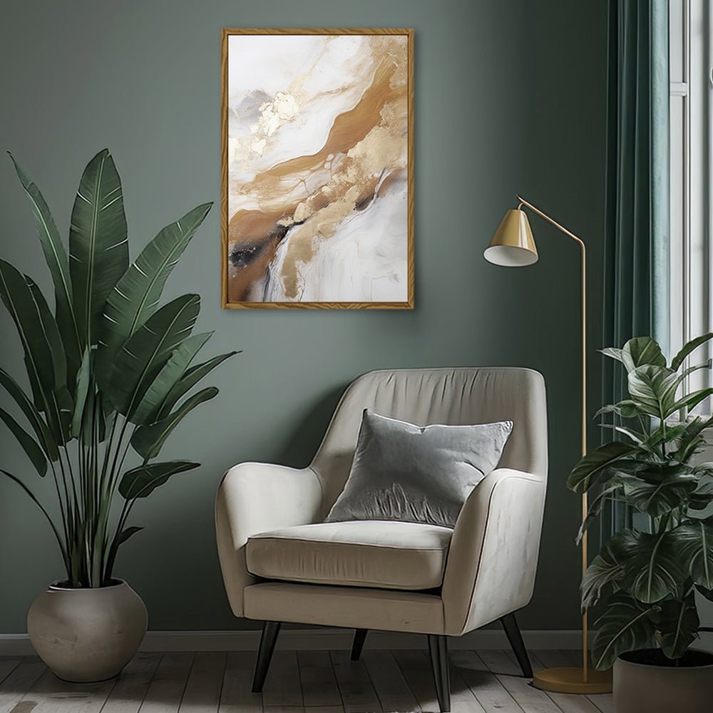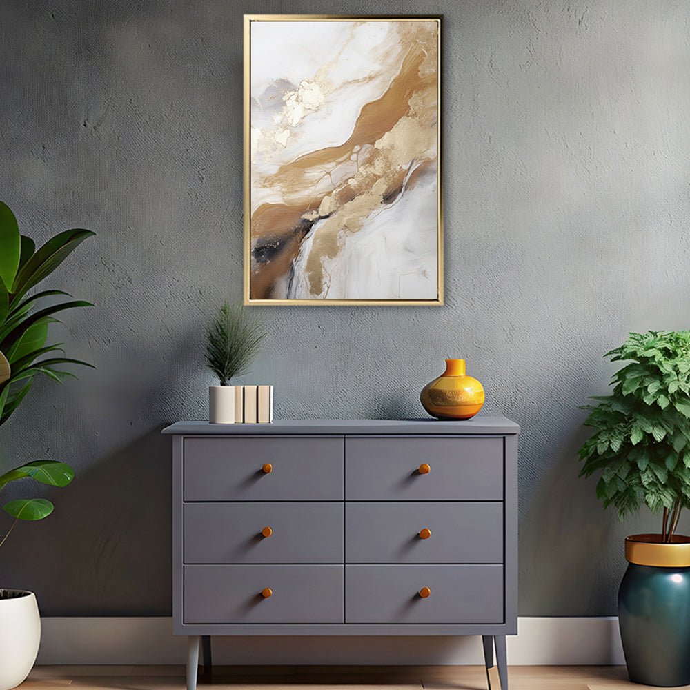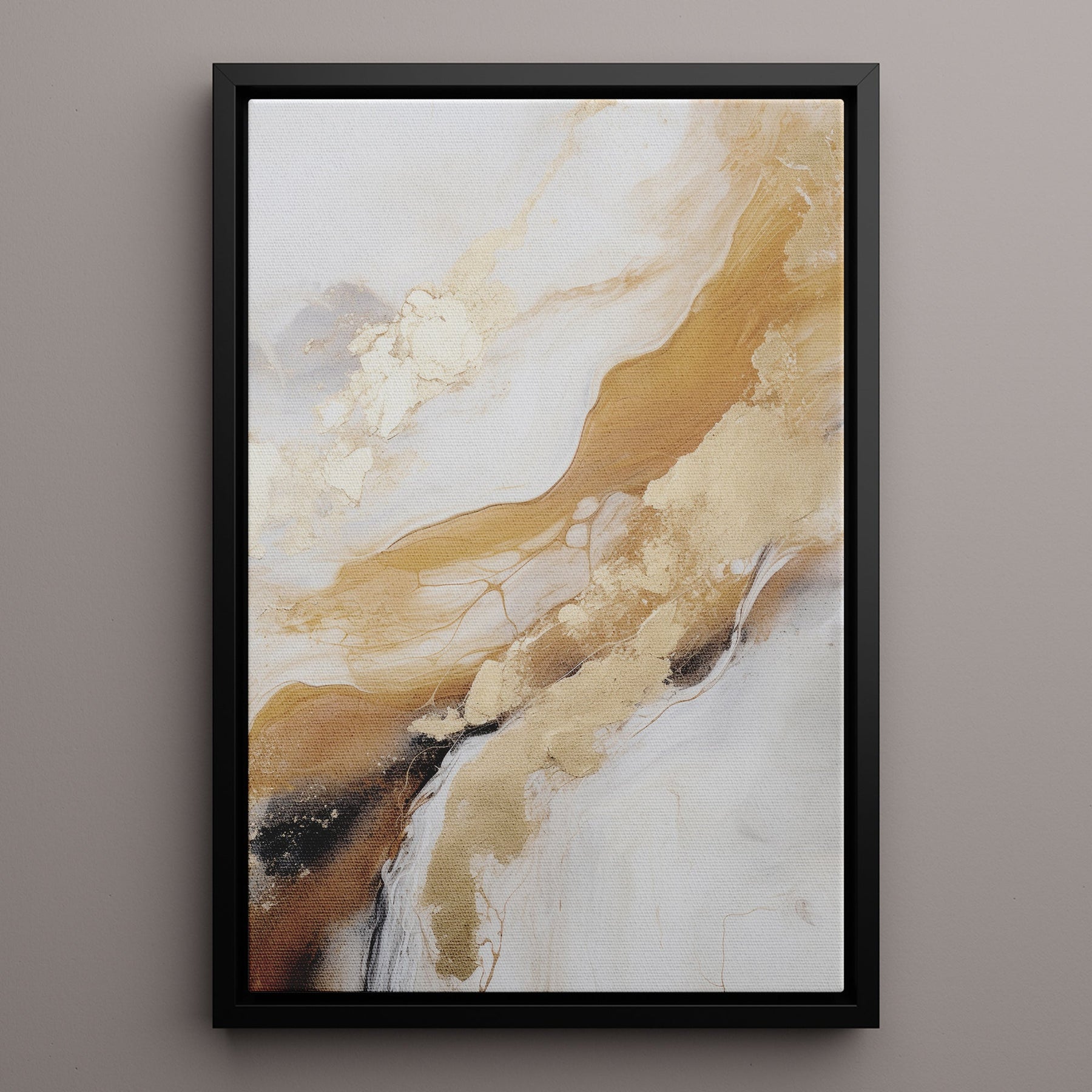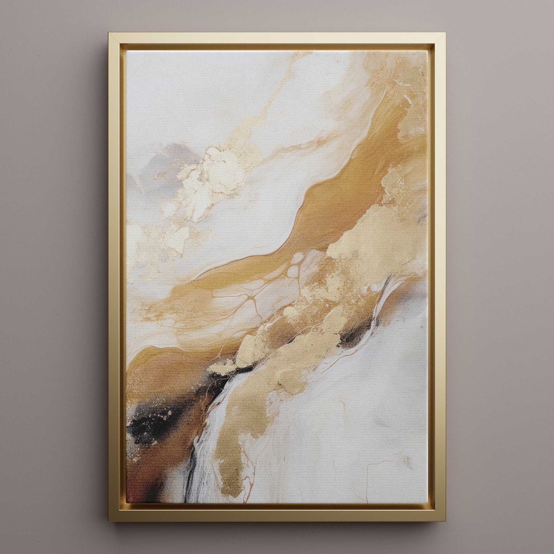 لوحة فنية قماشية مثبتة على إطار خشبي مع إطار عائم ورسم رخام ذهبي CV4162