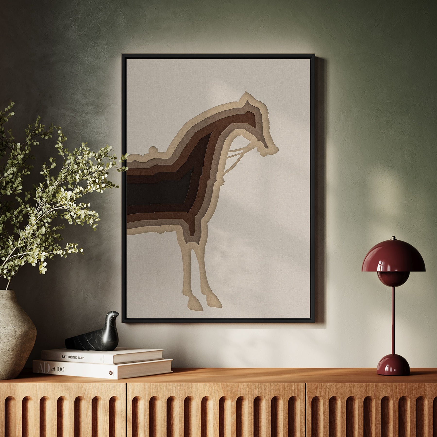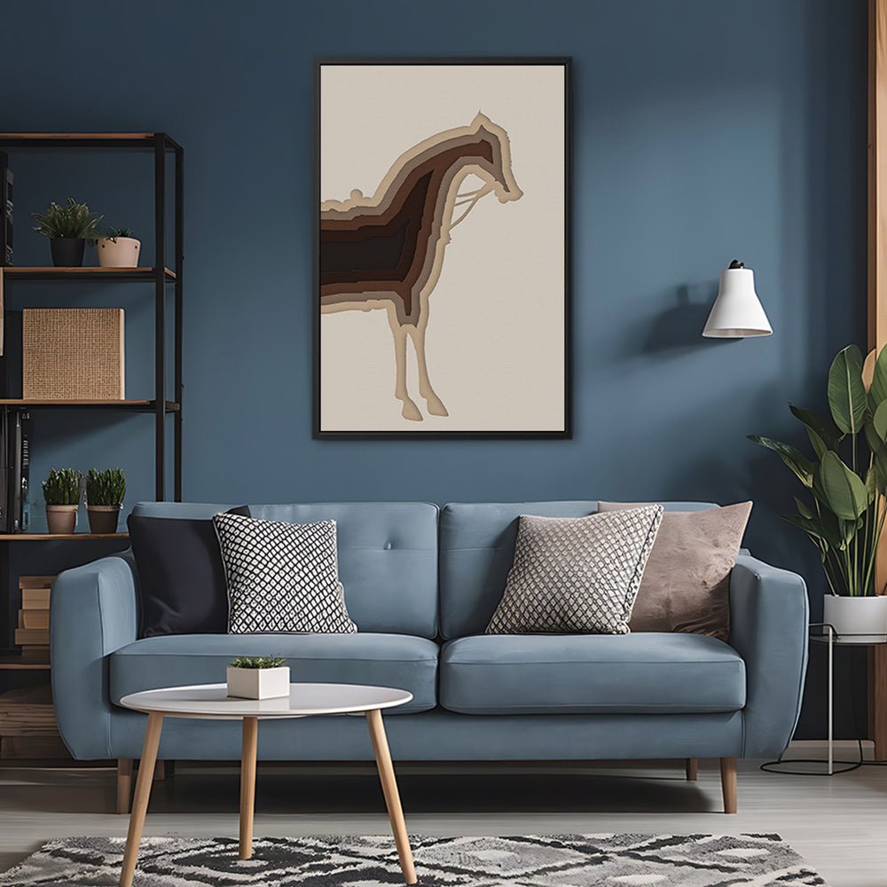 لوحة فنية قماشية مطبوعة على إطار خشبي مع إطار عائم ورسمة ظل حصان CV4186