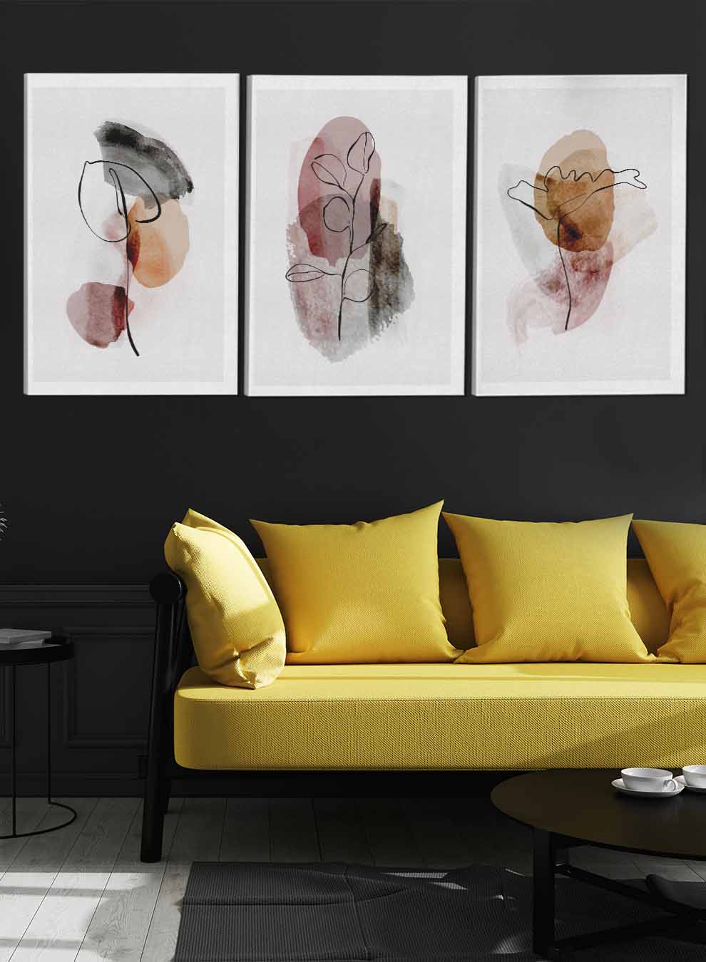لوحات تجريدية مائية داكنة حديثة (طقم من 3)
