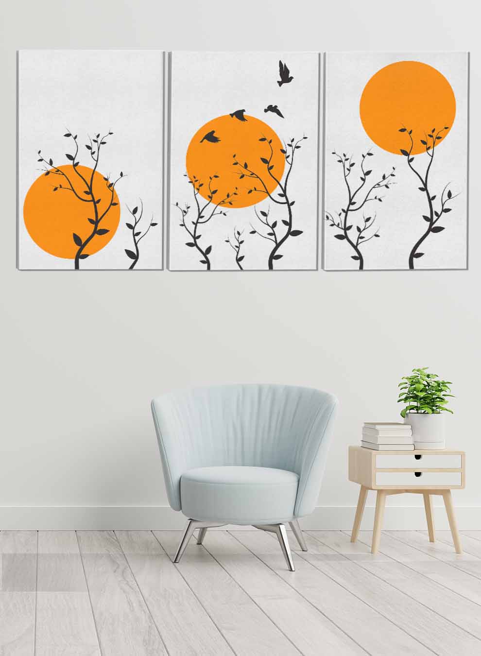لوحات غروب الشمس مع الأشجار والطيور الطائرة (طقم من 3)