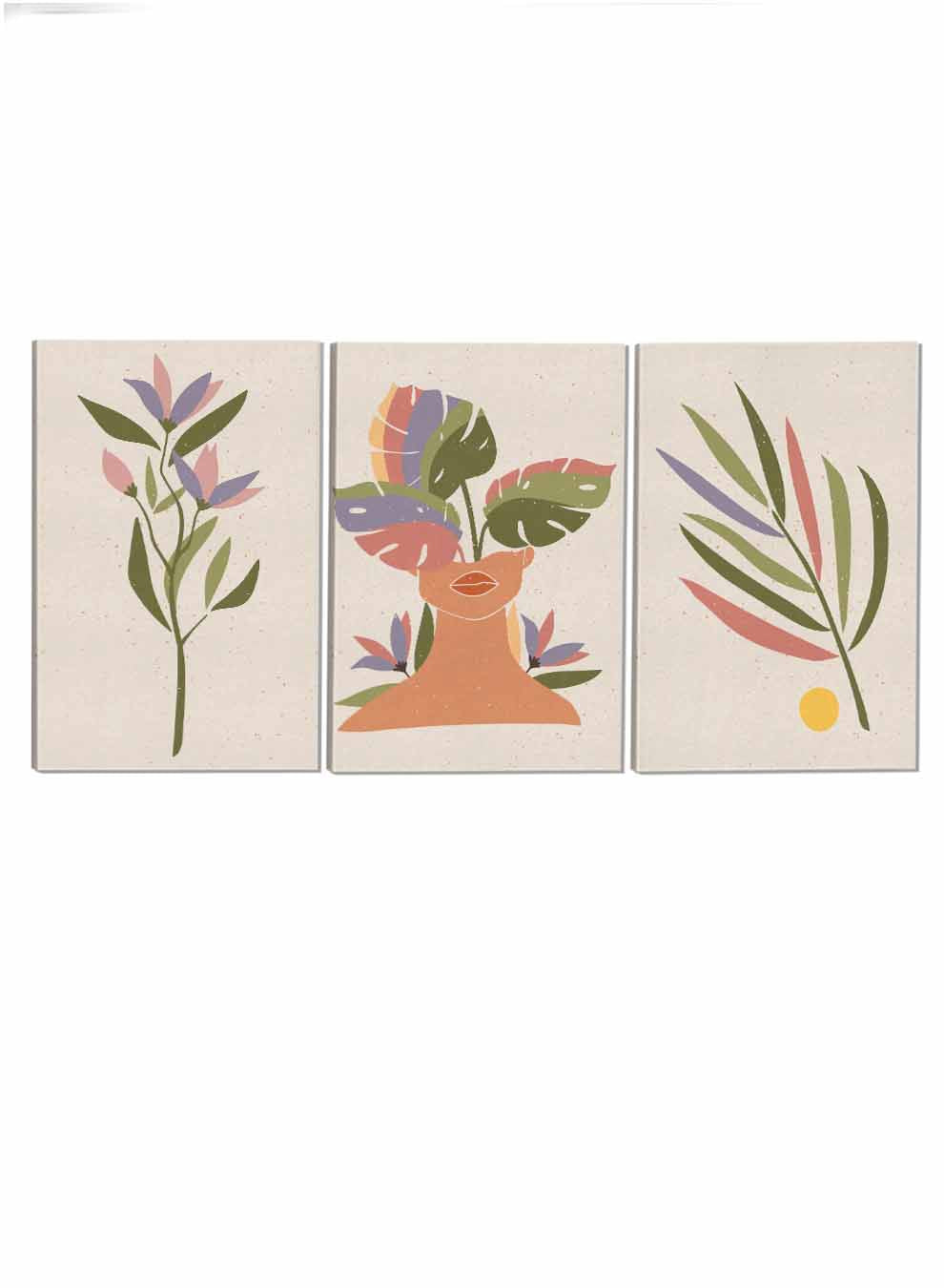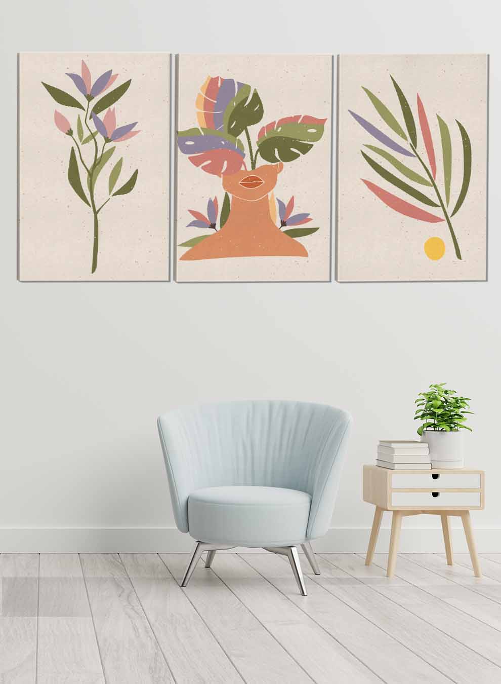 لوحات تجريدية لامرأة وأوراق (مجموعة من 3)
