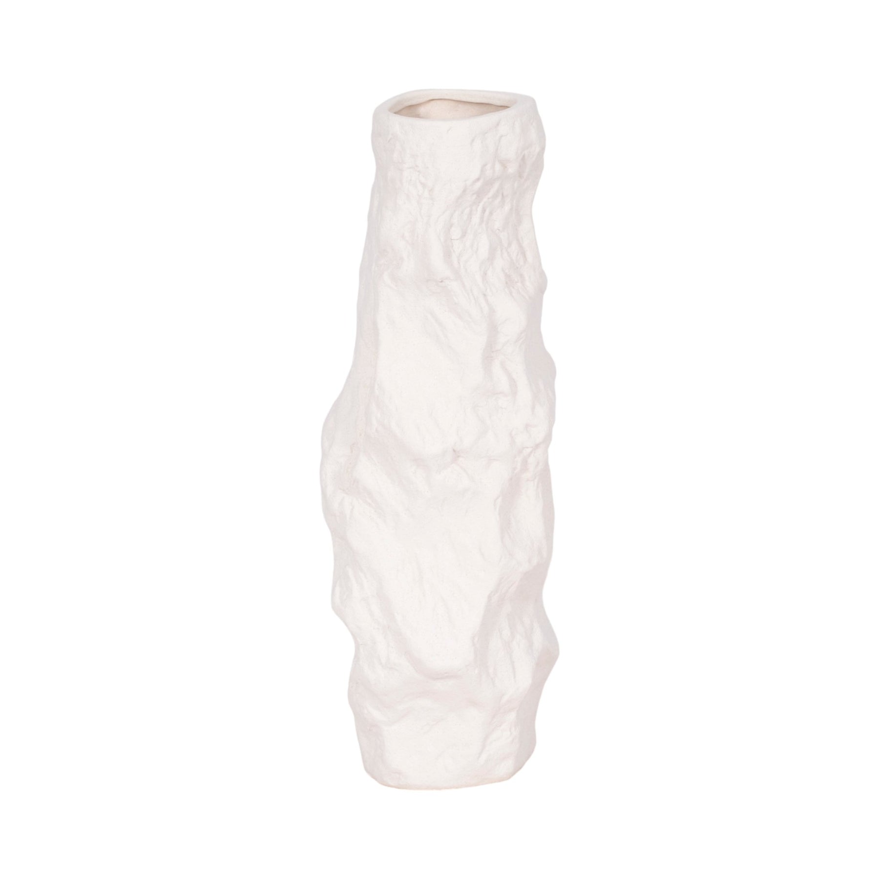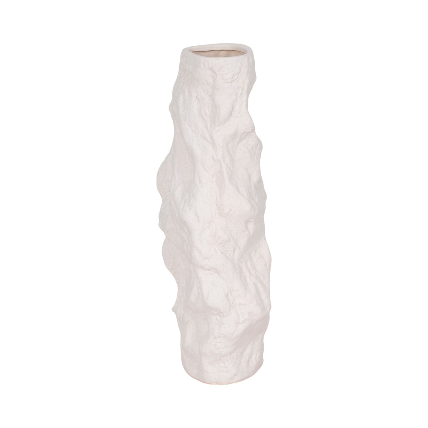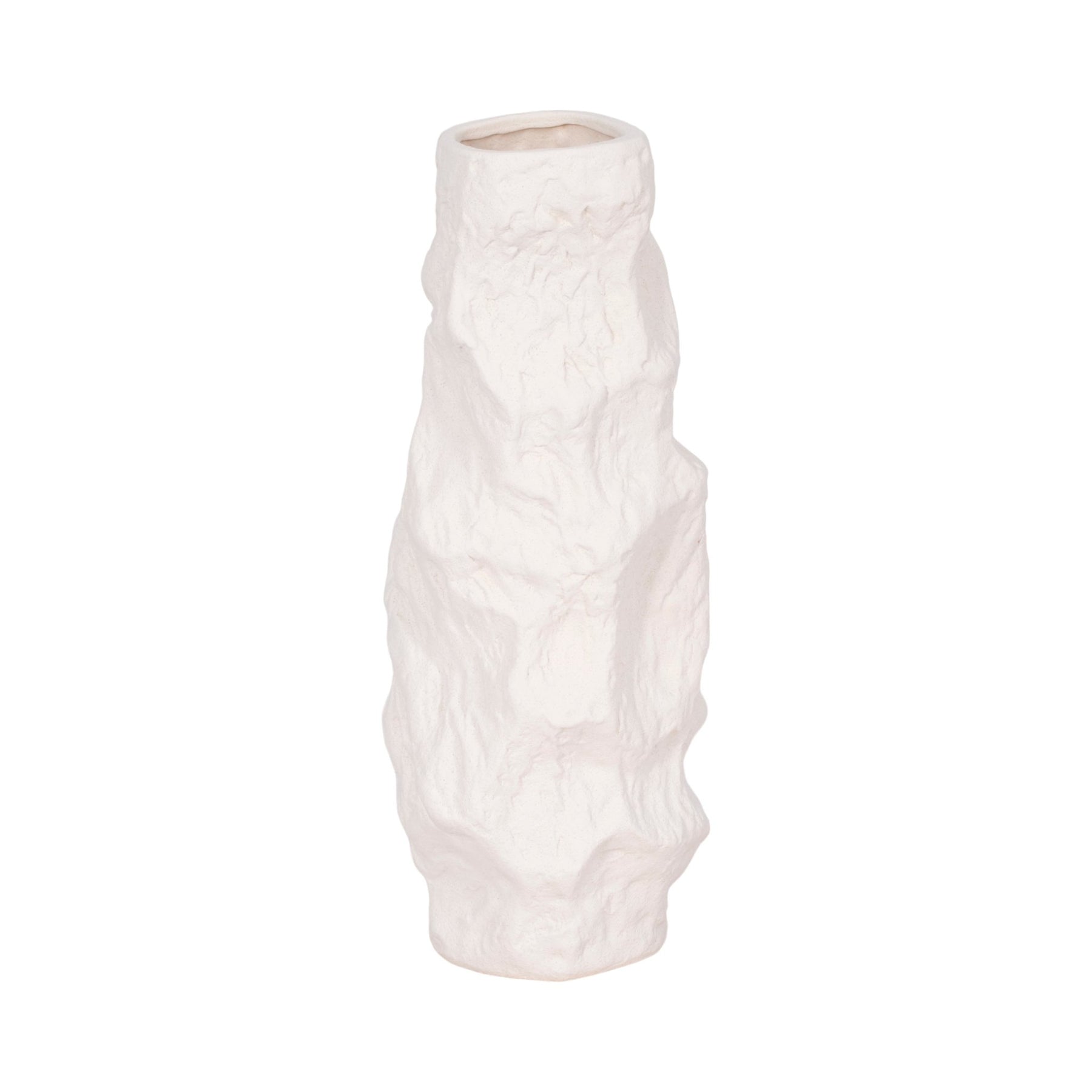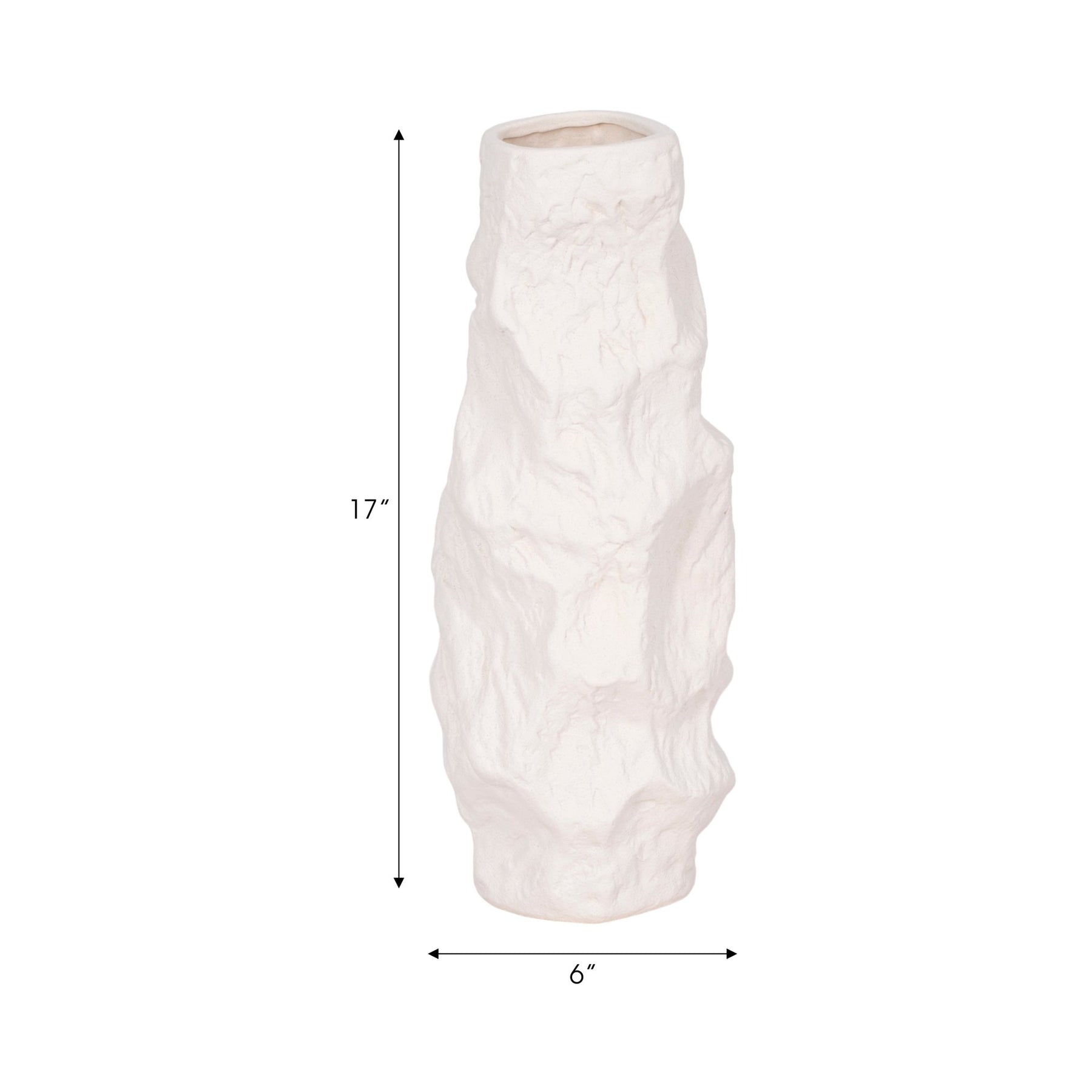 17" Jagged Textured Vase, White - Al Rugaib Furniture